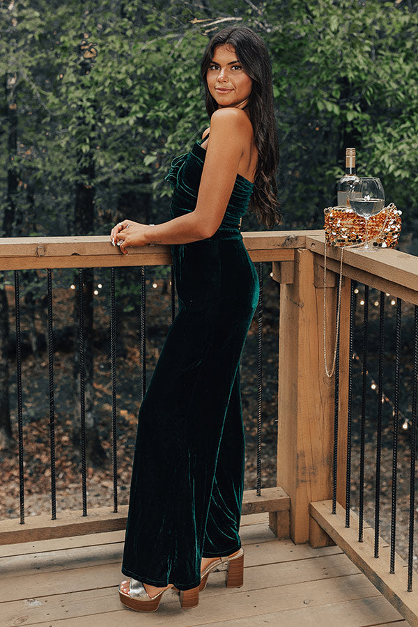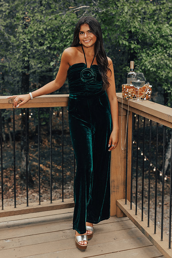 Fall Mixer Velvet Jumpsuit in Hunter Green