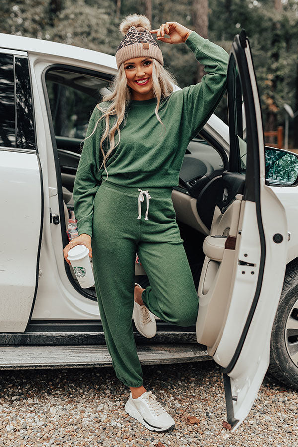 Stay warm during those chilly "fall nights" with this adorable green sweatshirt featuring soft lightweight material, a high rounded neckline, long loose sleeves with fitted cuffs, and a relaxed silhouette that falls into a straight hemline! Measurements