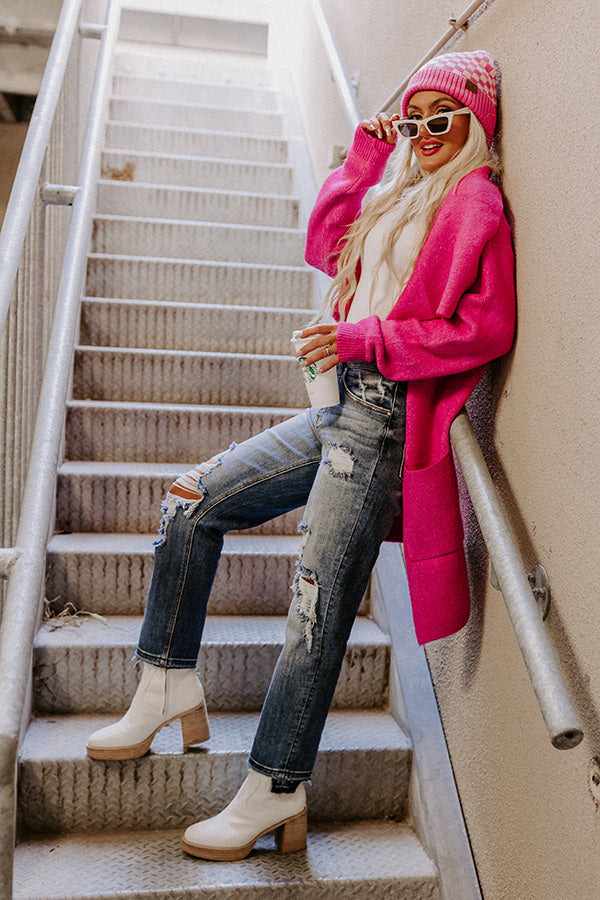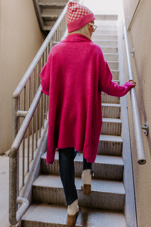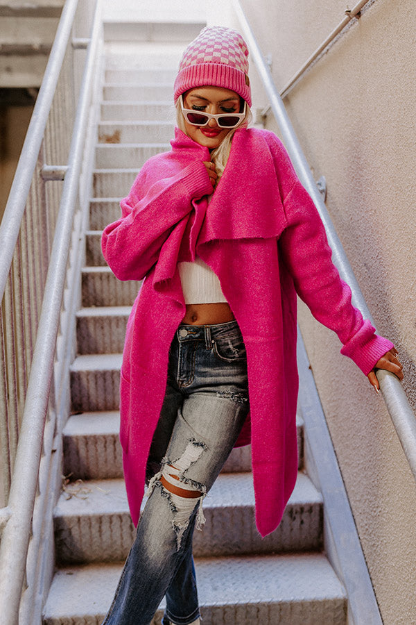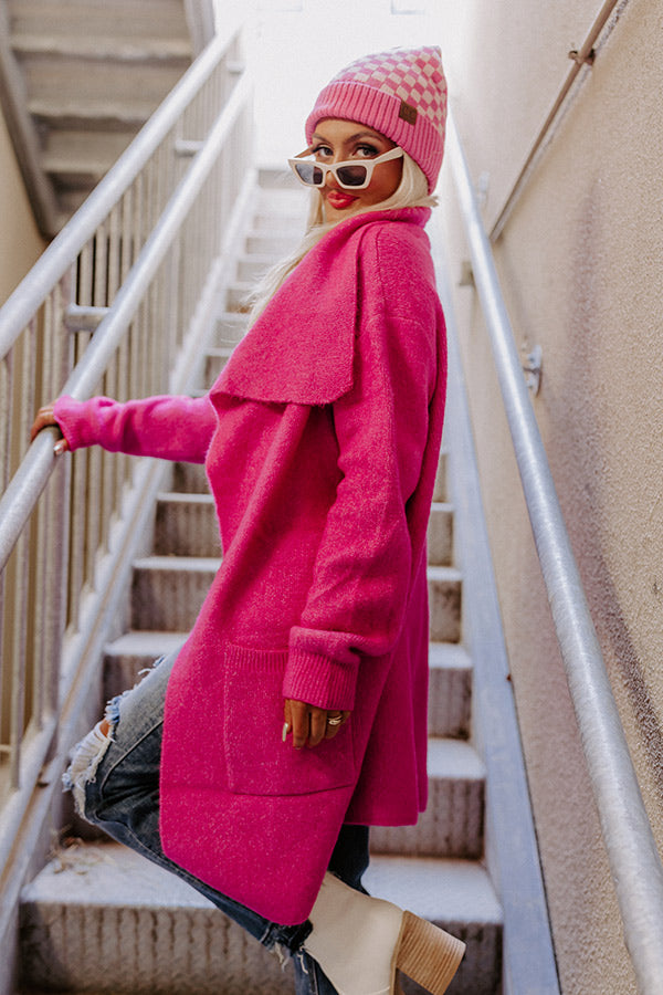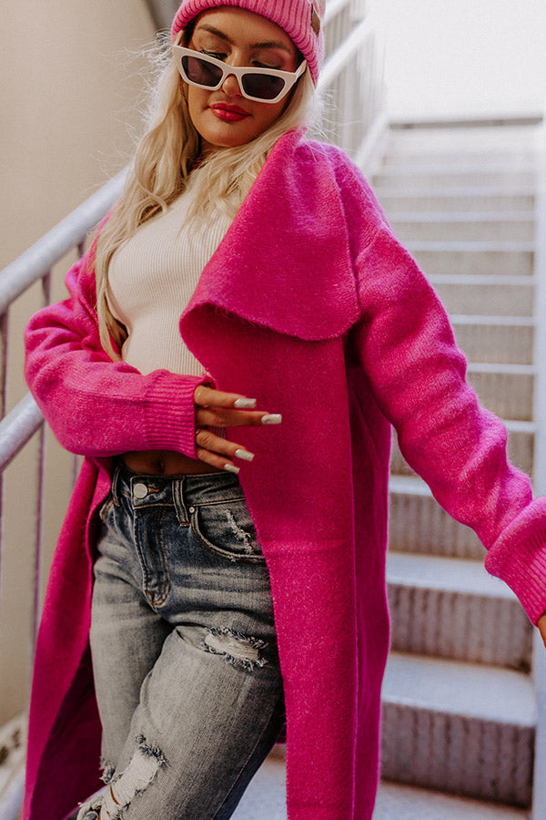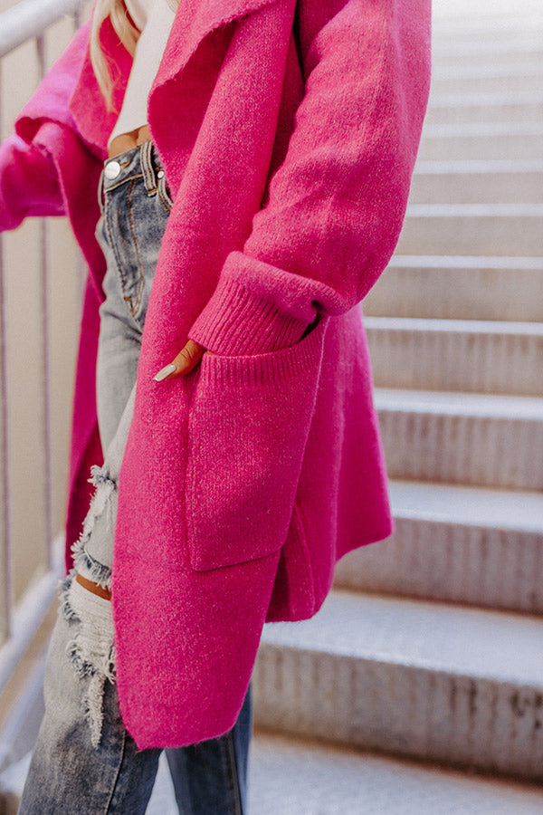 Fall Retreat Cardigan In Hot Pink