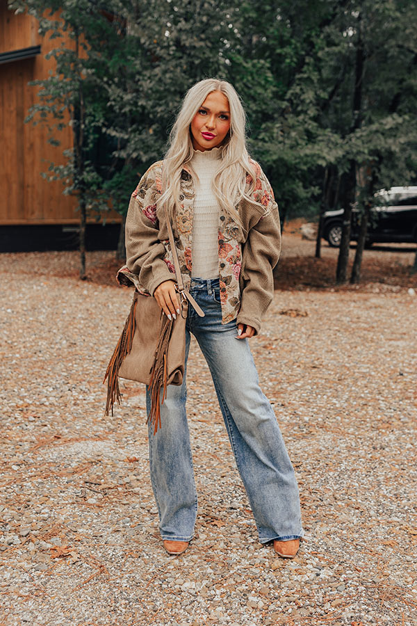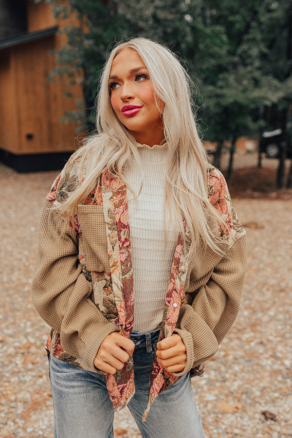 - Layer your look with fabulous feminine style with this lightweight floral piece!