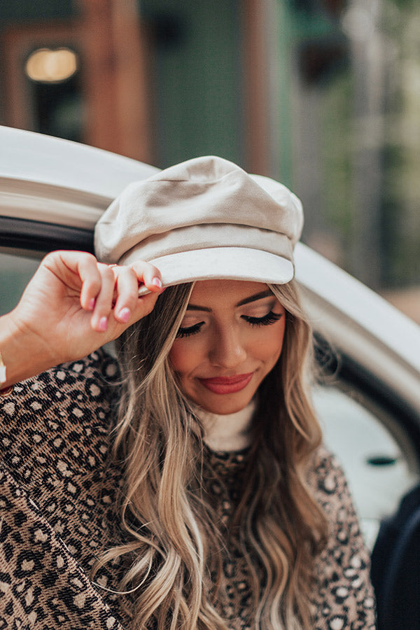 Take your fall wardrobe to the next level with our darling champagne colored "Fall Tradition" cabbie hat featuring ultra soft lightweight velvet material and a chic curved bill!