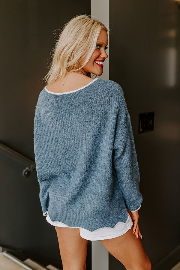 - Calling all fall girlies! This adorable sweater is a must-have for the season! With its cozy material and adorable scalloped hemline, it puts a unique twist on timeless style. Update your sweater collection with this trendy piece!