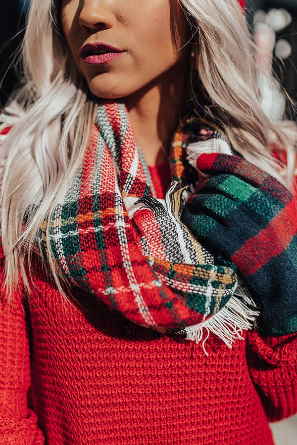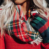 Add an extra accessory of warmth to your OOTD with our white "Falling In Love At The Lodge" scarf featuring soft lightweight tight knit material, a black, red, blue, and yellow plaid pattern, and fringed edge detailing!