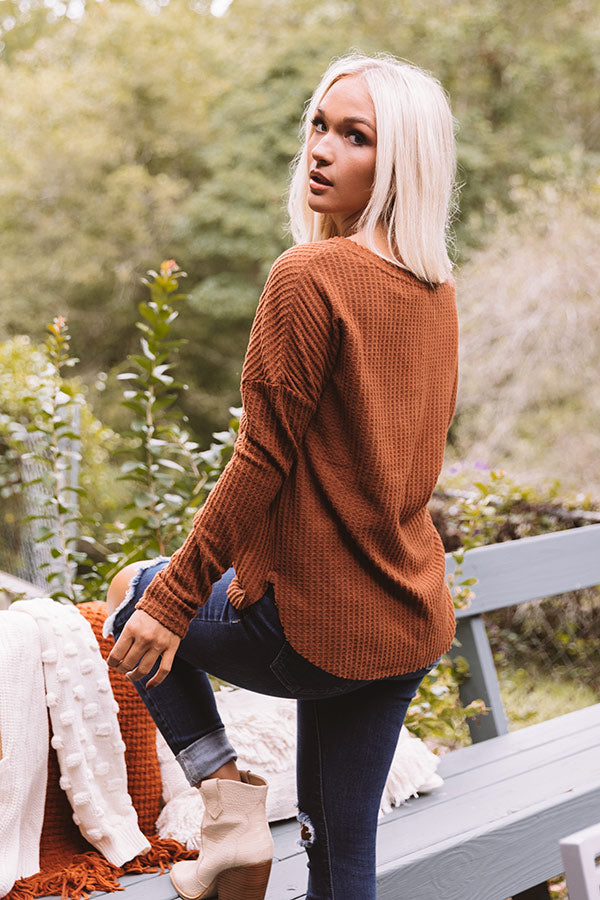 Falls Frills Waffle Knit Top In Brown