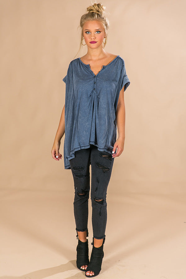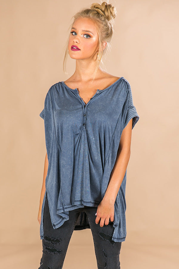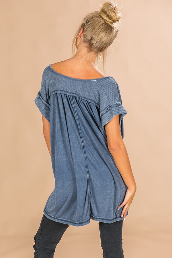 Grab a coffee & spend the morning shopping around your local farmer's market in this cute & comfy shift tee! The "Farmer's Market Shift Tee" has short waffle knit sleeves, a button-down neckline, a relaxed cotton bodice with exposed seams & a split-sided hem. Whether you style this tee with shorts this Summer, or jeans this Fall, you will never run out of reasons to wear this comfy cute closet essential!