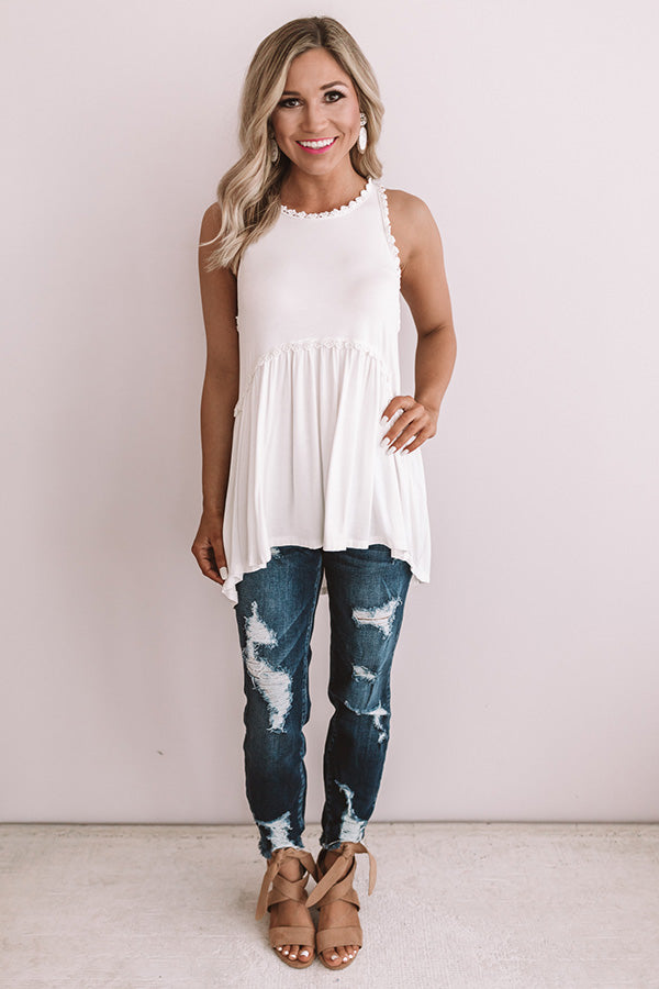 This precious tank is the perfect addition to your spring wardrobe and it features a zipper closure on the back! Pair it with some floral shorts or distressed pants for a fun and easy look for any day of the week! Measurements