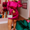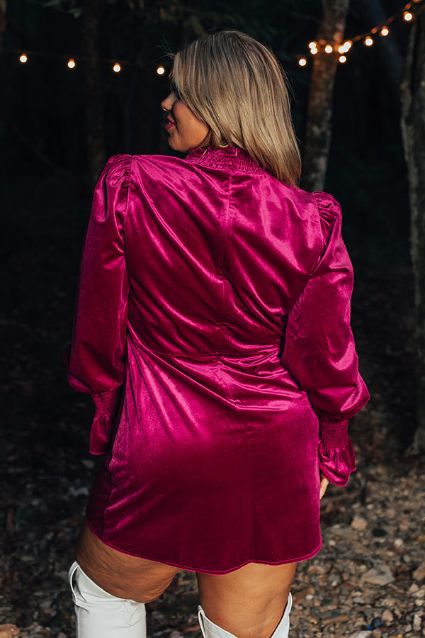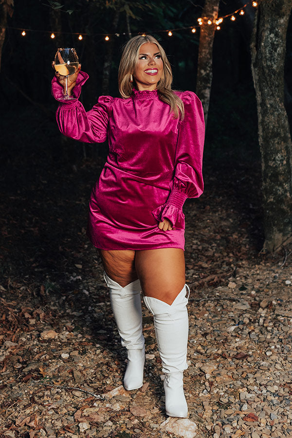 Fashionably Late Velvet Mini Dress In Fuchsia Curves