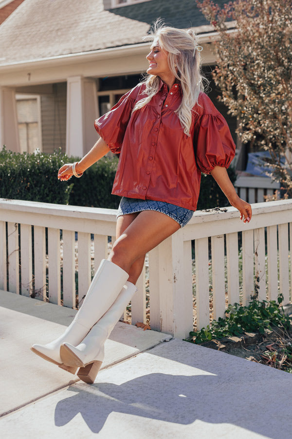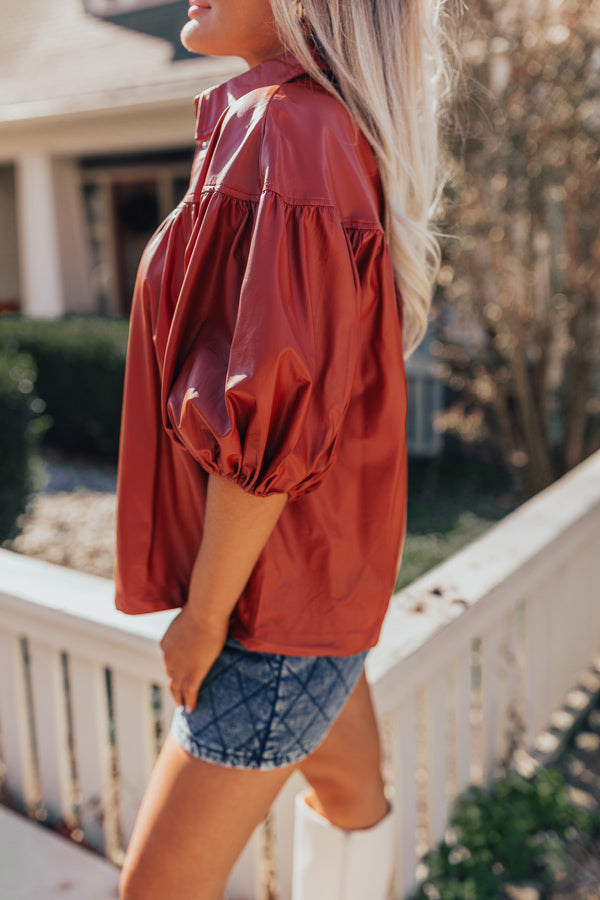Fate Would Have It Faux Leather Top in Rust