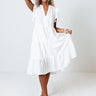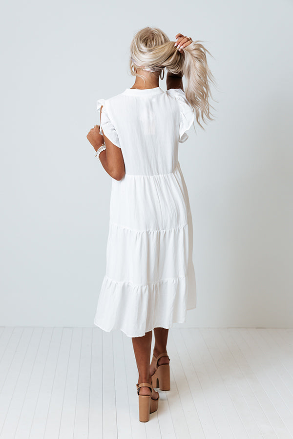 You plus this white midi dress equals fate! You are sure to love this cutie with its lightweight flowy material, flirty v-cut neckline, ruffled cap sleeves, hidden side pockets, and relaxed tiered silhouette that cascades into a mid-calf length peplum hemline! Measurements