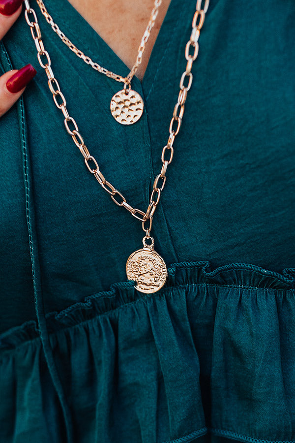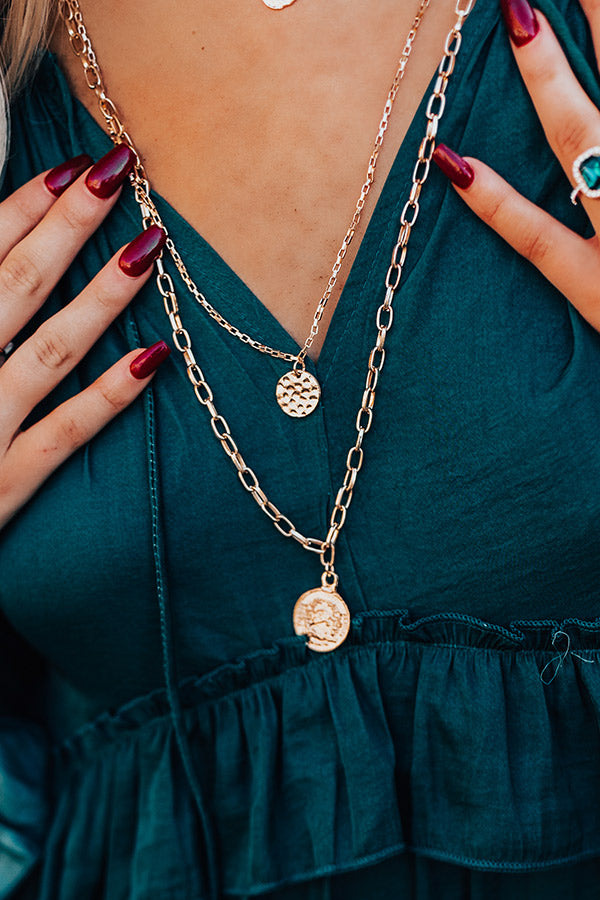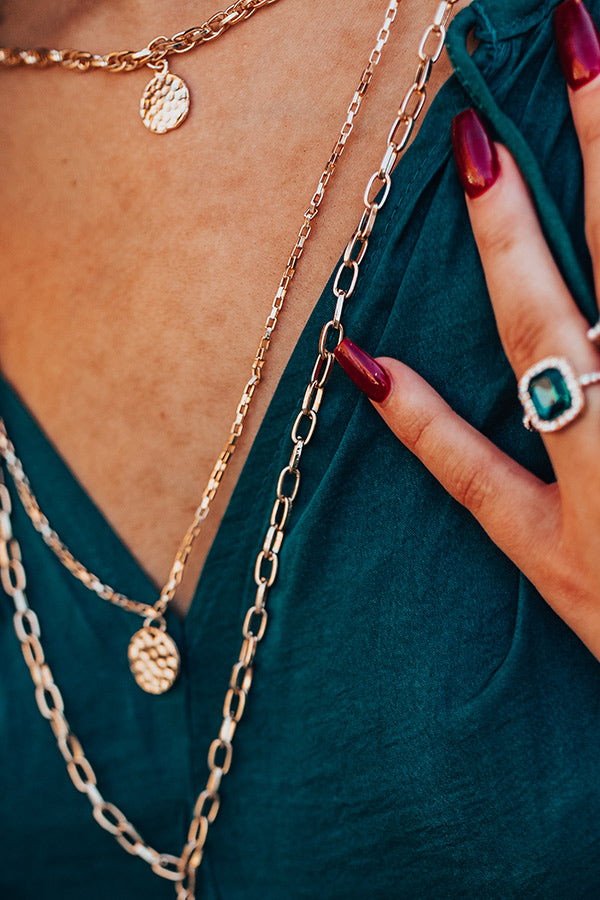 Refresh your jewelry wardrobe with our luxe gold 'Fave Song' necklace featuring three layered pieces: a three varying length small link chains with stamped gold charms!