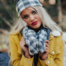 If you don't "favor the cold," then stay warm in this charming infinity scarf featuring ultra soft lightweight tight knit material with one side being all grey and the other side being patterned with a grey and white buffalo check print!