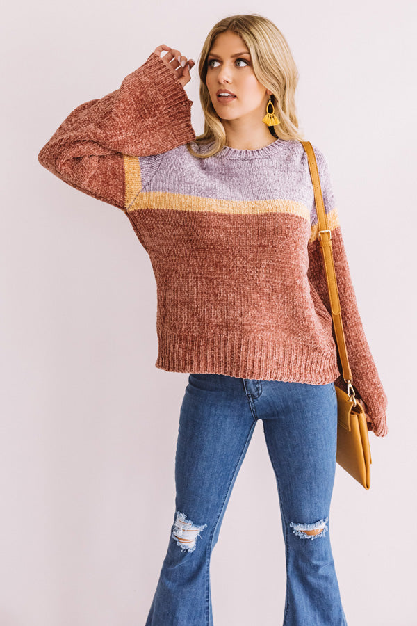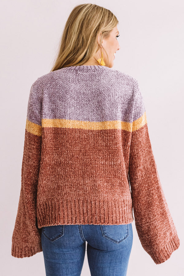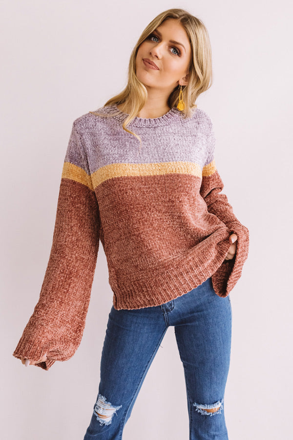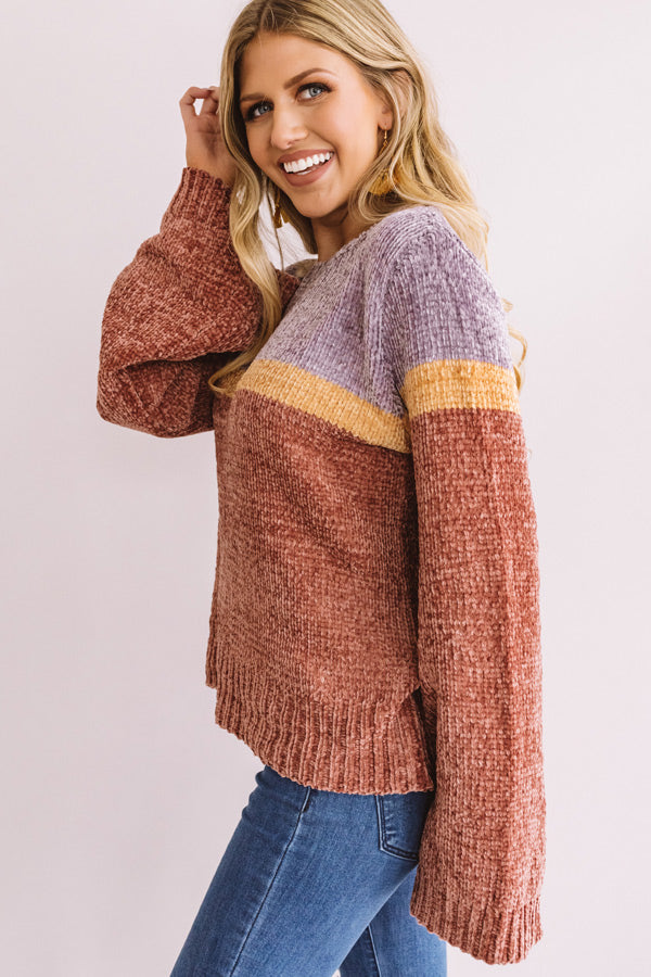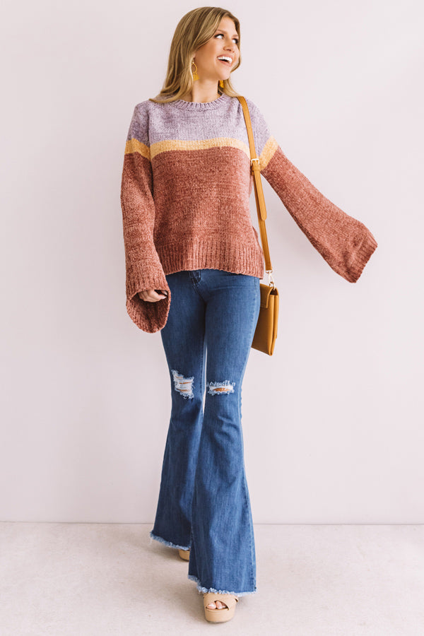 Get ready for your "favorite season" in this adorable fall sweater featuring a soft chenille material with subtle ribbed texturing, color block pattern, high rounded neckline, long oversized sleeves with flares cuffs, and a relaxed silhouette that falls into a straight hemline! We have styled this piece with some distressed flares and a matching mustard heel, statement earring, and crossbody, but you can also wear it with some distressed black skinnies or a black skirt, "The Underwood Faux Leather Wedge in Dusty Purple," and our "Say It Ain't Soho Hat in Rust!"