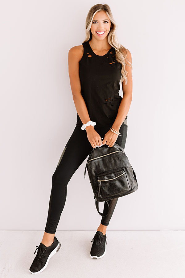 This unique black tank is sure to be one of your favorites with its soft lightweight material with distressed detailing, high rounded neckline, wide 2-inch sleeveless straps with a wide racerback fit, and relaxed silhouette that falls into a straight hemline! This casual cutie styles perfectly with a pair of black leggings and sneakers and a faux leather backpack for the ultimate athleisure look, or it can be worn with some distressed denim shorts, "The Allen Wedge in Black," and our "CEO Of Chic Sunnies in White" for a more everyday look!