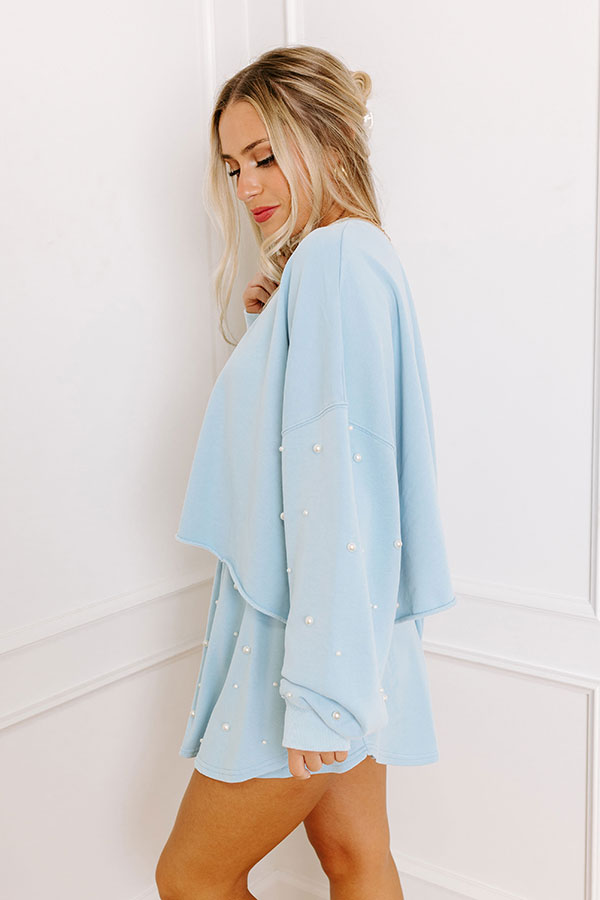 Feeling Chic Embellished Crop Sweatshirt in Sky Blue