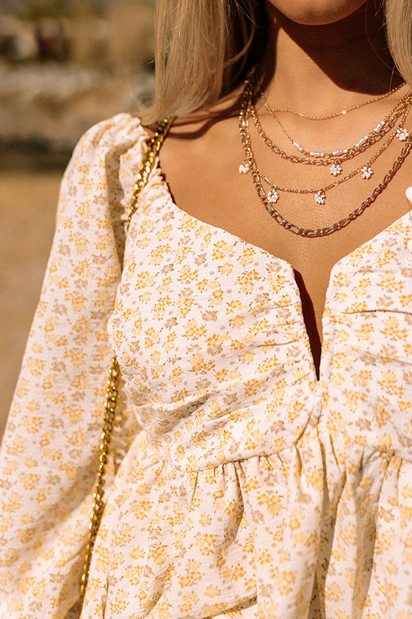 You are sure to feel glorious when you complete your look with this flirty top featuring lightweight material patterned with a dainty floral print, a scooped neckline with an accent v-notch, a smocked back, 3/4-length bishop sleeves with flared cuffs, and a flattering babydoll silhouette that falls into a straight hemline!