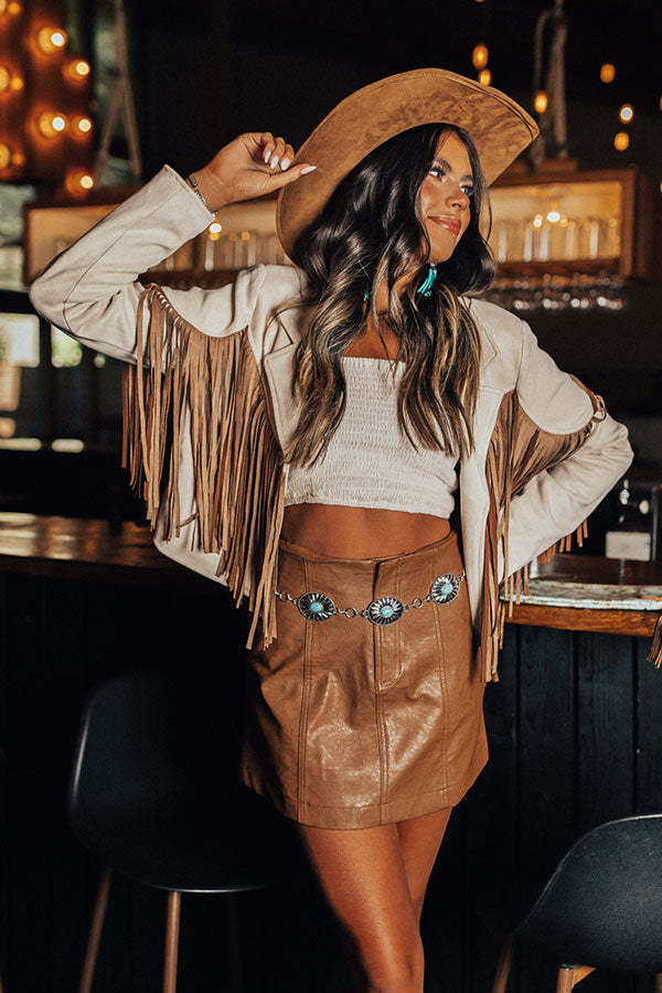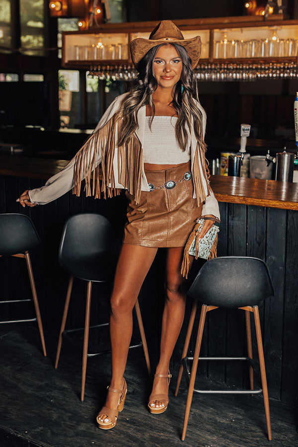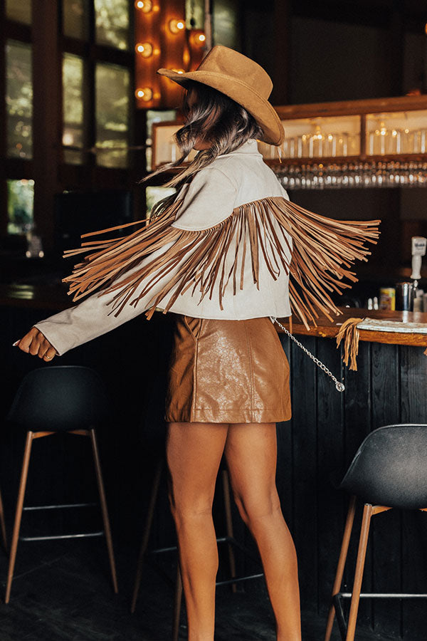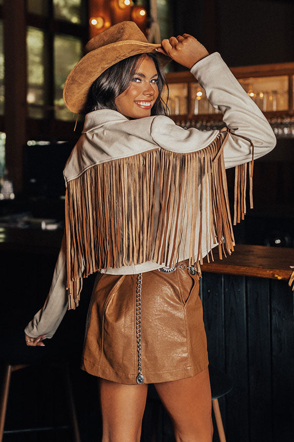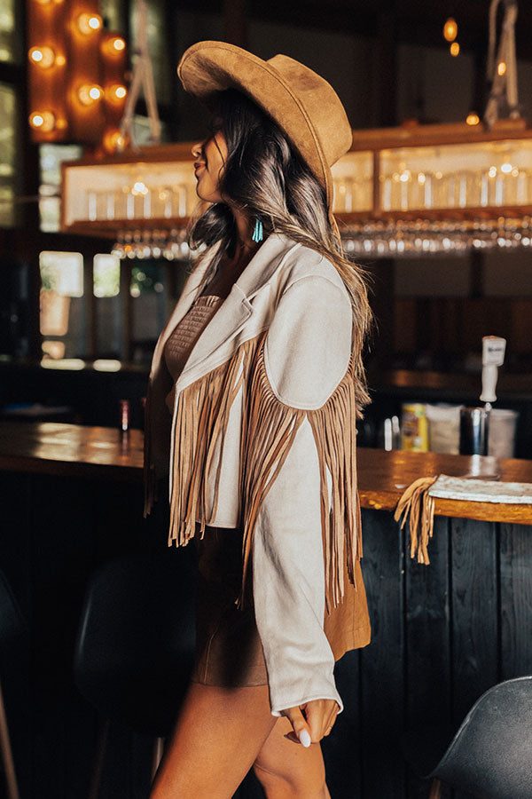 Feeling Grand Faux Suede Fringe Jacket In Brown