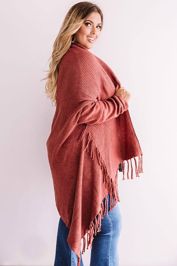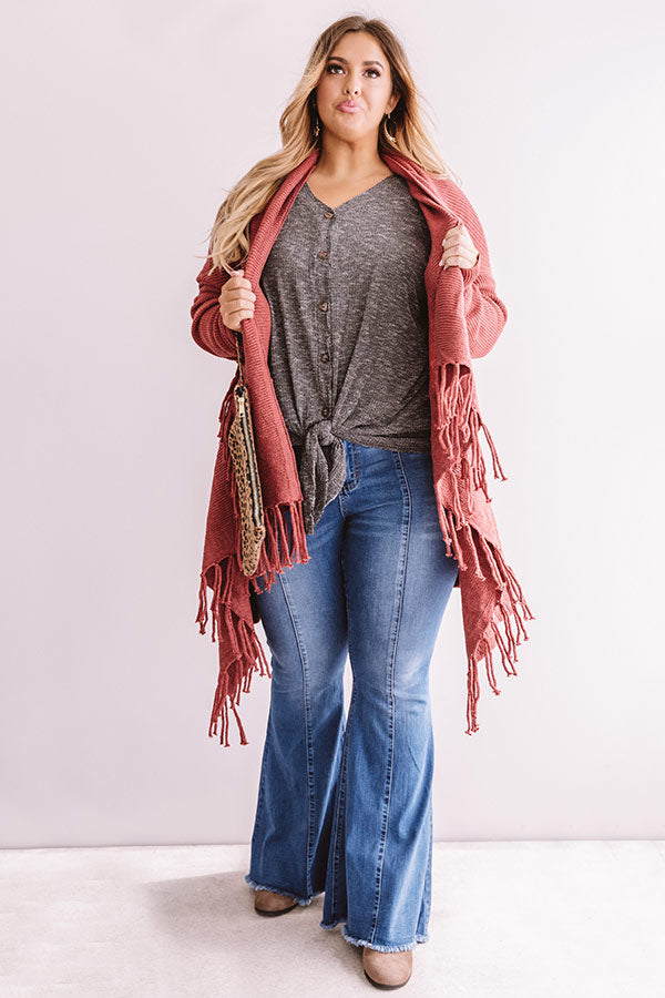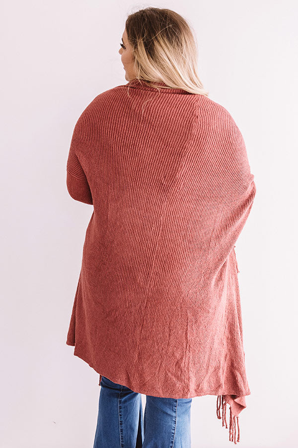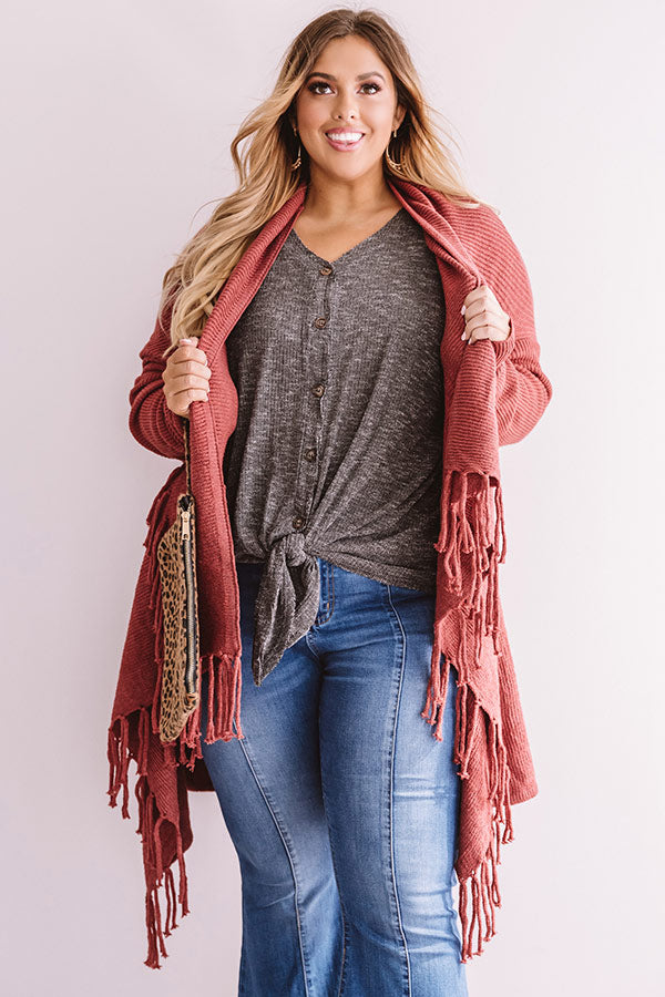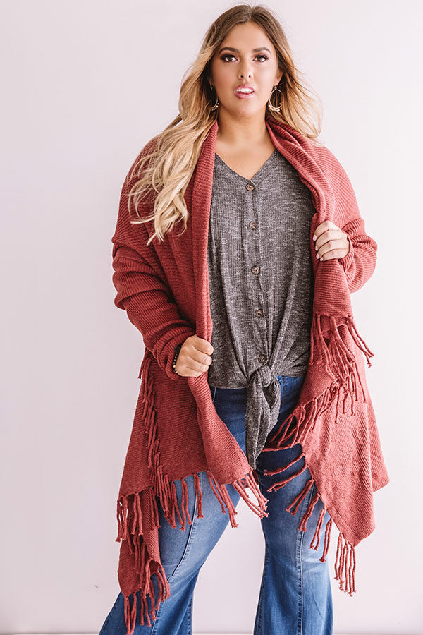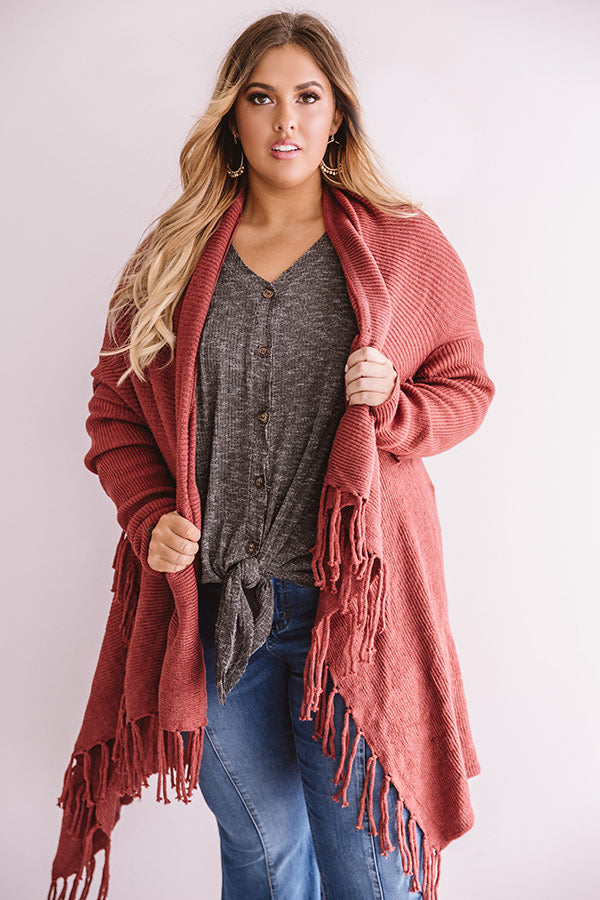 Feeling Sweet Fringe Cardigan In Rustic Rose Curves