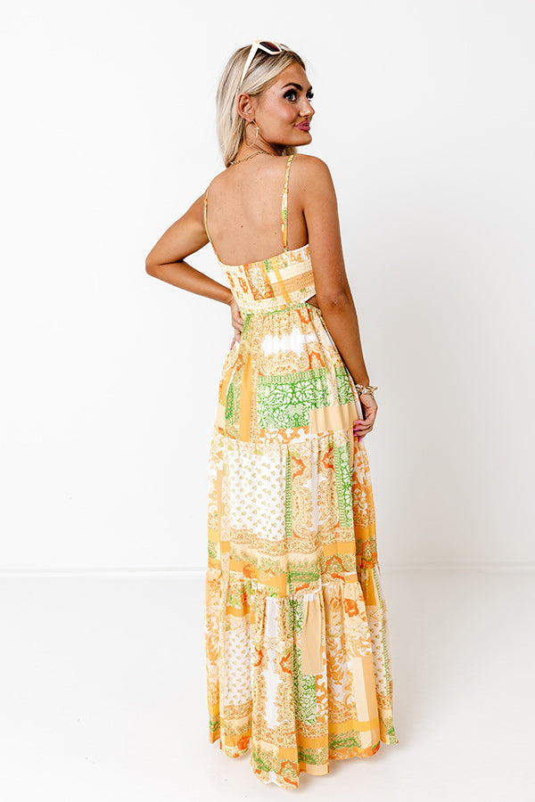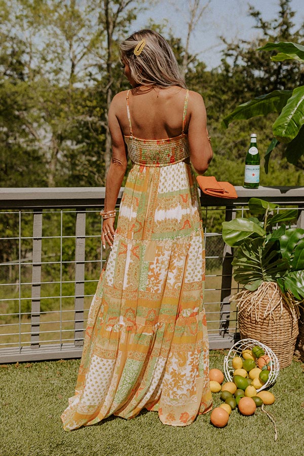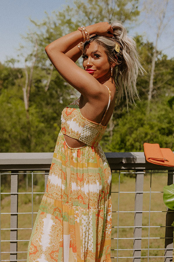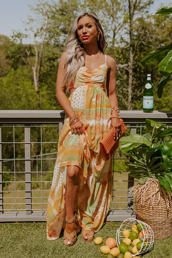 Wow the crowd in our beautiful 'Festival Weather' maxi dress featuring lightweight material patterned with an intricate white, orange, and lime hued print, a v-cut neckline with adjustable spaghetti straps, a smocked back with accent side cut outs, and a relaxed skirt silhouette that cascades into a straight ankle-length hemline! on products