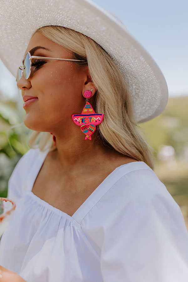 Life's a party, so accessorize like it with our stunning 'Fiesta' earrings featuring an oversized neon beaded dangling silhouette!