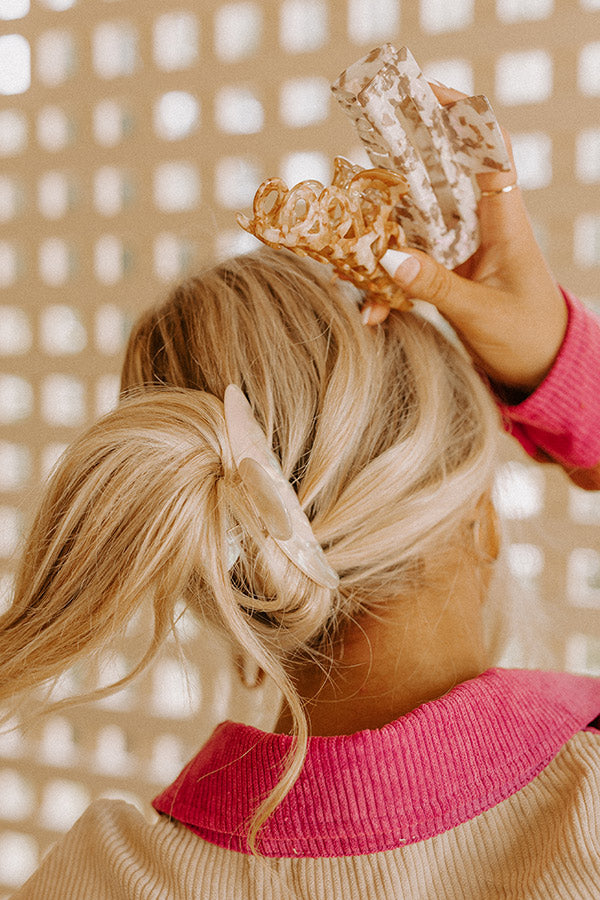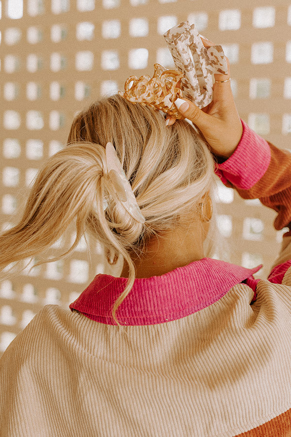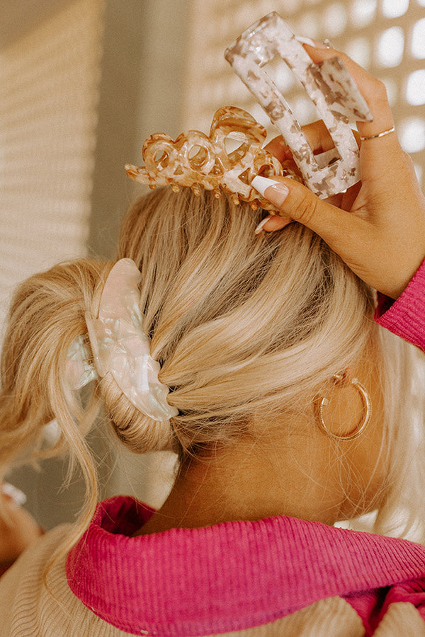 You won't have to figure out an intricate hair style when you have this adorable hair claw clip set featuring three different clips: a rectangular tan and white marbled one, a looped camel and white marbled one, and a rounded white marbled one!