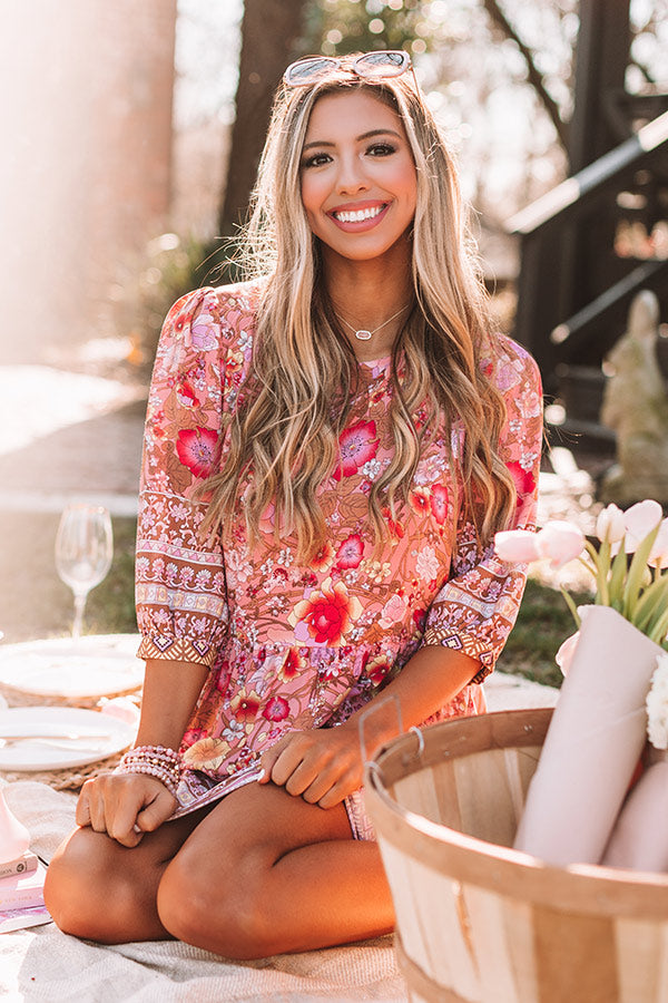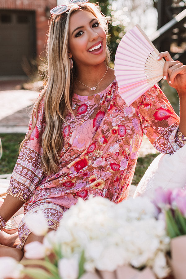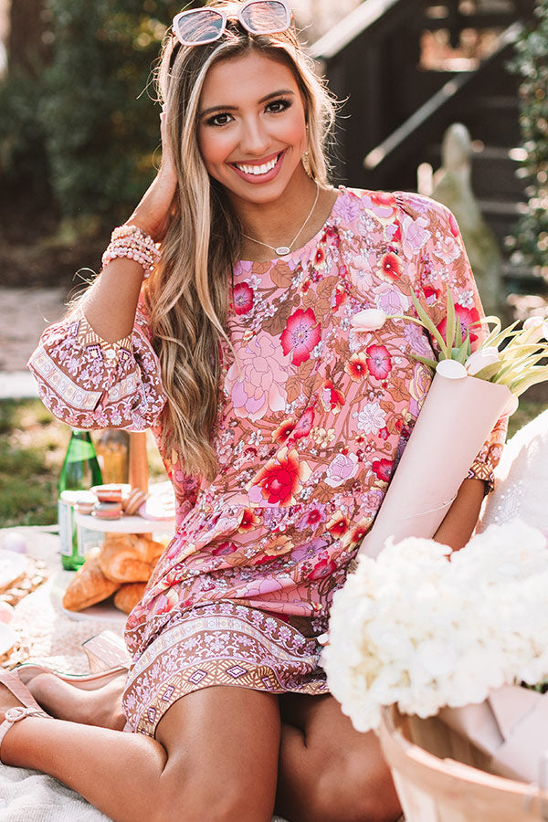 Fiji Sunset Floral Shift Dress In Pink