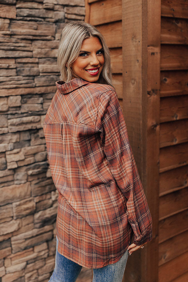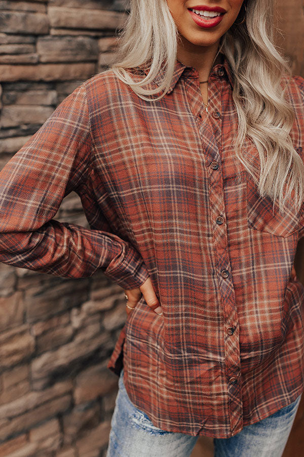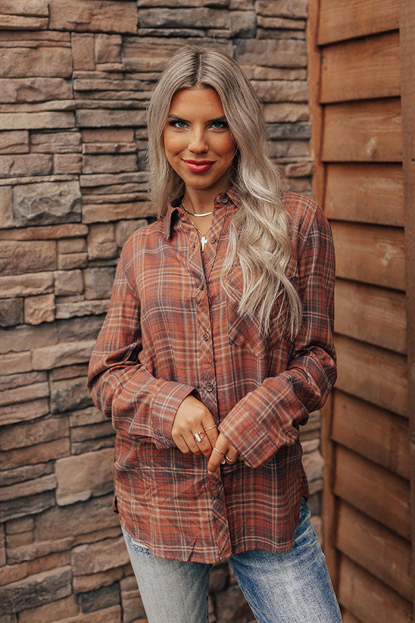 It's almost time to bust out plaid and we have the perfect piece for you! Our 'Fill Up Your Cup' top features lightweight material patterned with a rust and grey hued plaid print, a button down front with a collared neckline, long loose sleeves with button closure cuffs, a single accent chest pocket, and a relaxed silhouette that falls into a straight hemline!
