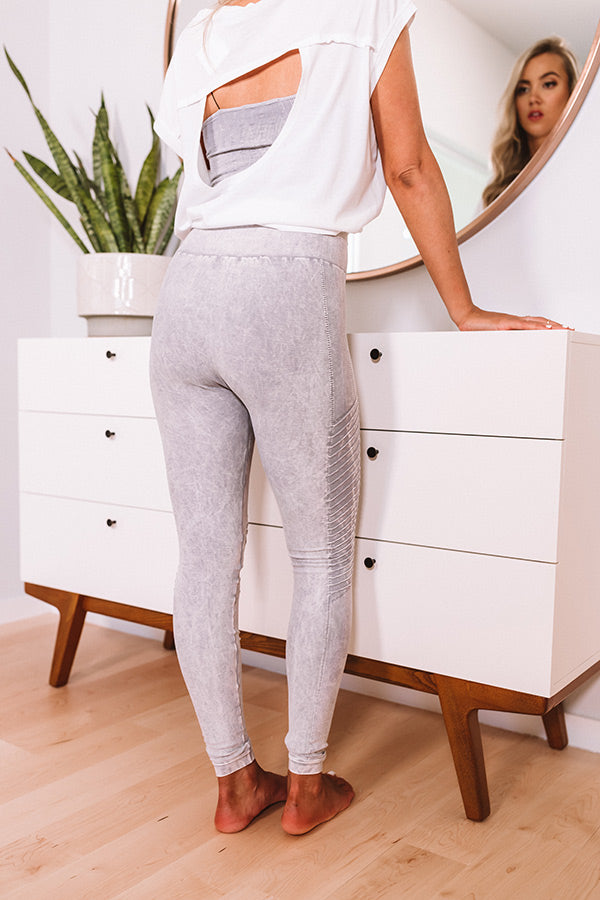 You are sure to look active and amazing in our adorable grey 'Finding Nirvana' leggings featuring soft seamless four way stretchy material with ribbed texturing down the side, wide high waistband for tummy control, and a form fitting silhouette that falls into straight ankle length hemlines! These one size seamless leggings can comfortably fit sizes 3-14.