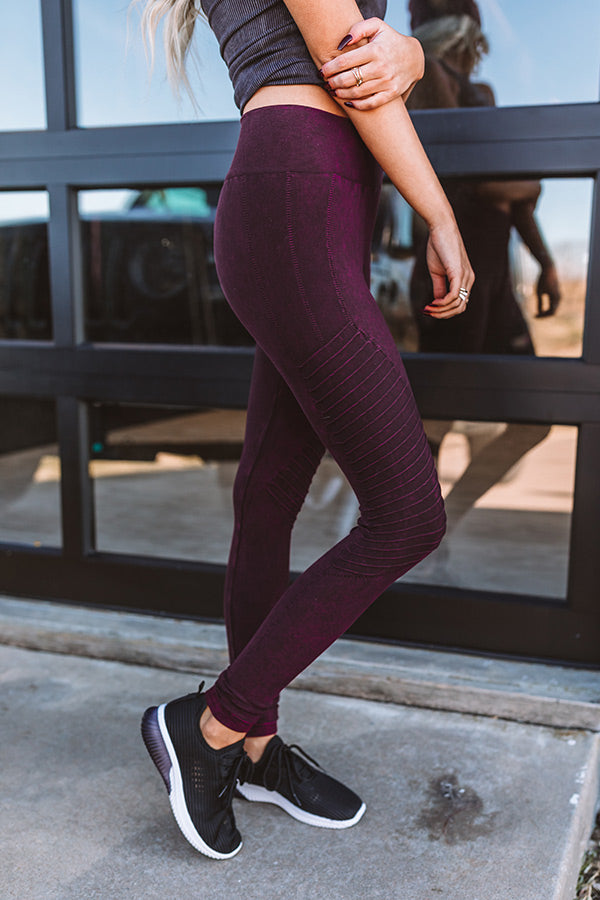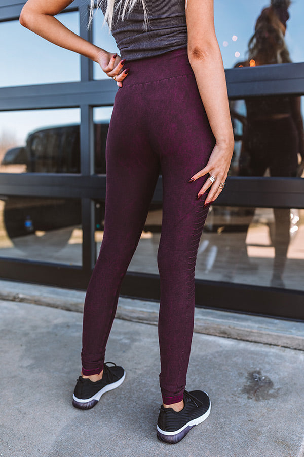 You are sure to look active and amazing in our adorable maroon 'Finding Nirvana' leggings featuring sleek seamless four way stretchy material with ribbed texturing down the side, wide high waistband for tummy control, and a flattering form fitting silhouette that tapers into straight ankle length hemlines! These one size seamless leggings can comfortably fit sizes 3-14.