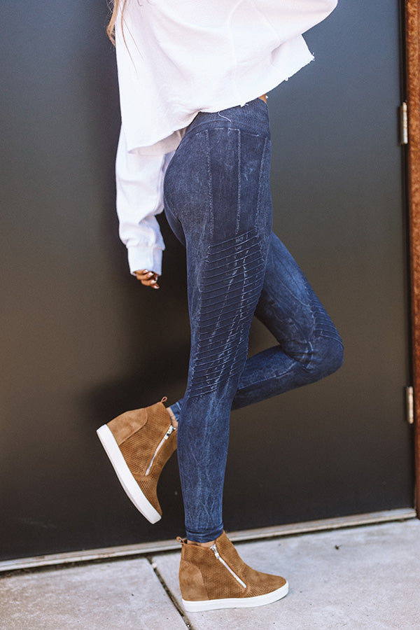 You are sure to look active and amazing in our adorable navy "Finding Nirvana" leggings featuring soft seamless four way stretchy material with ribbed texturing down the side, wide high waistband for tummy control, and a form fitting silhouette that falls into straight ankle length hemlines! This piece pairs perfectly with a basic white crop top, sunnies, a canvas tote, and some trendy brown wedged sneakers for the ultimate athleisure look!
