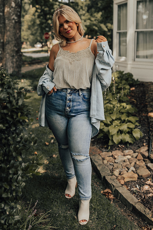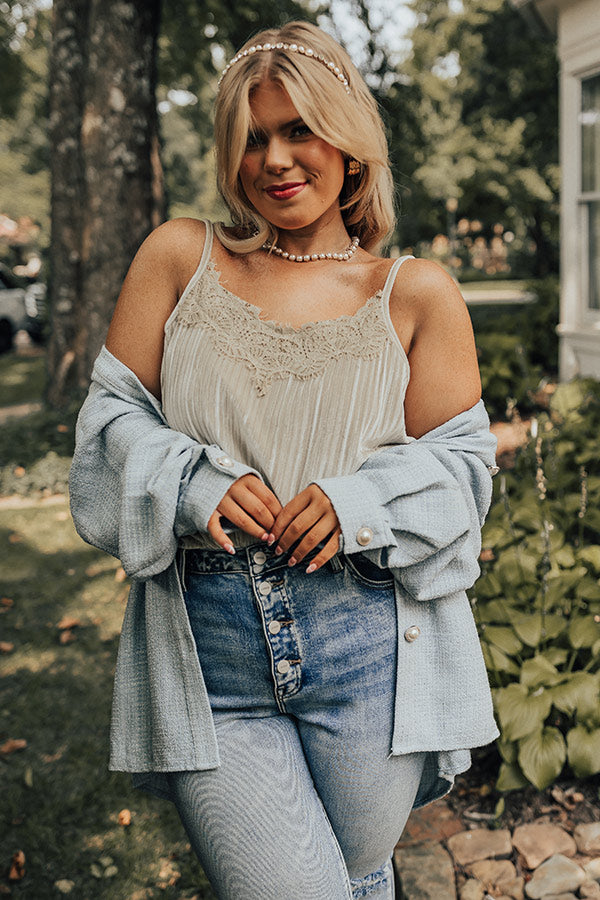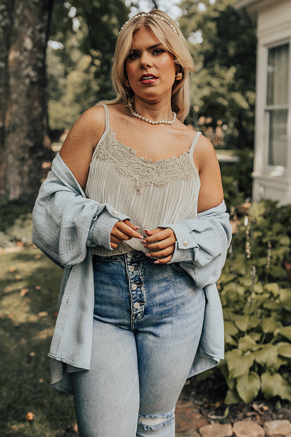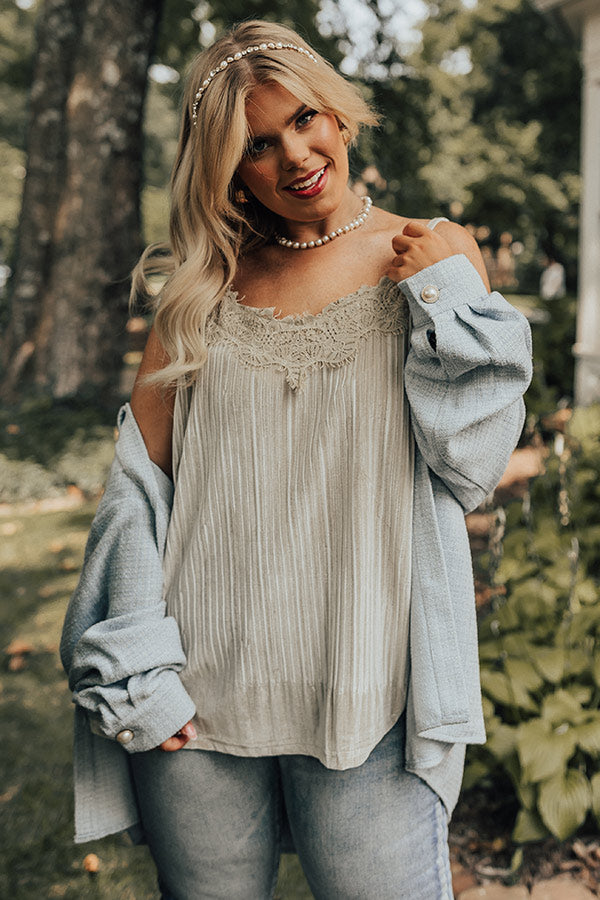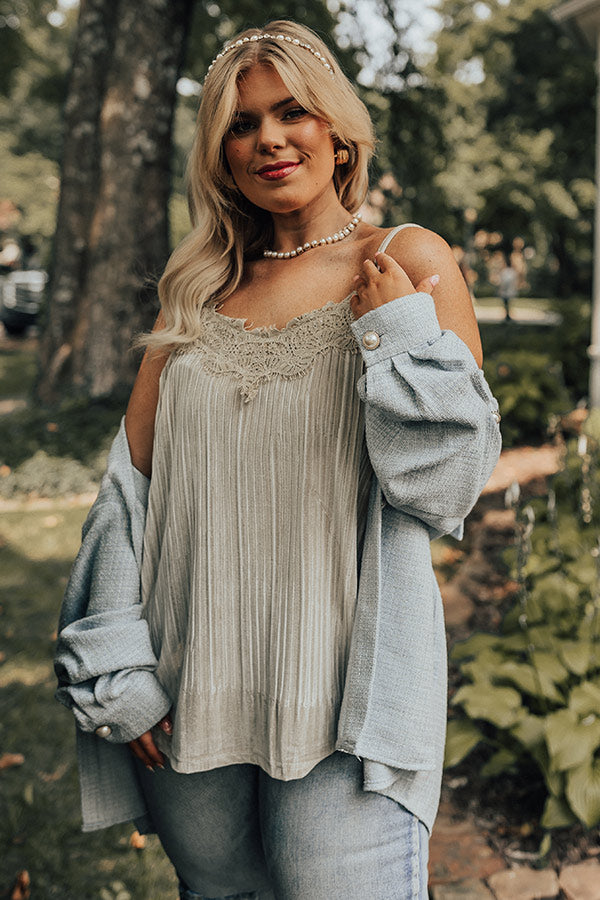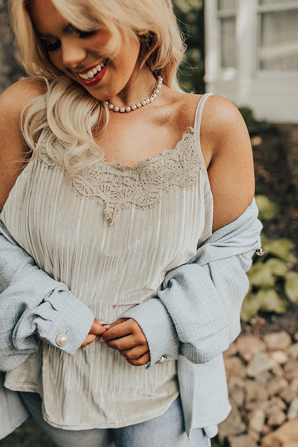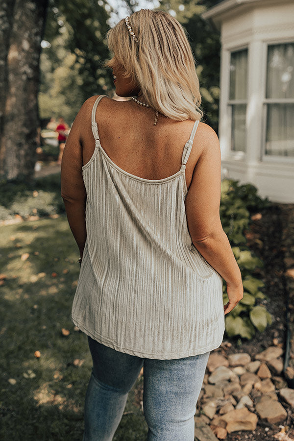 The perfect fall layering piece, our darling champagne colored plus size 'Finding Romance' tank features velvet material with ribbed texturing, an intricate lace v-cut neckline, adjustable spaghetti straps, and a relaxed silhouette that ends in a straight hemline!