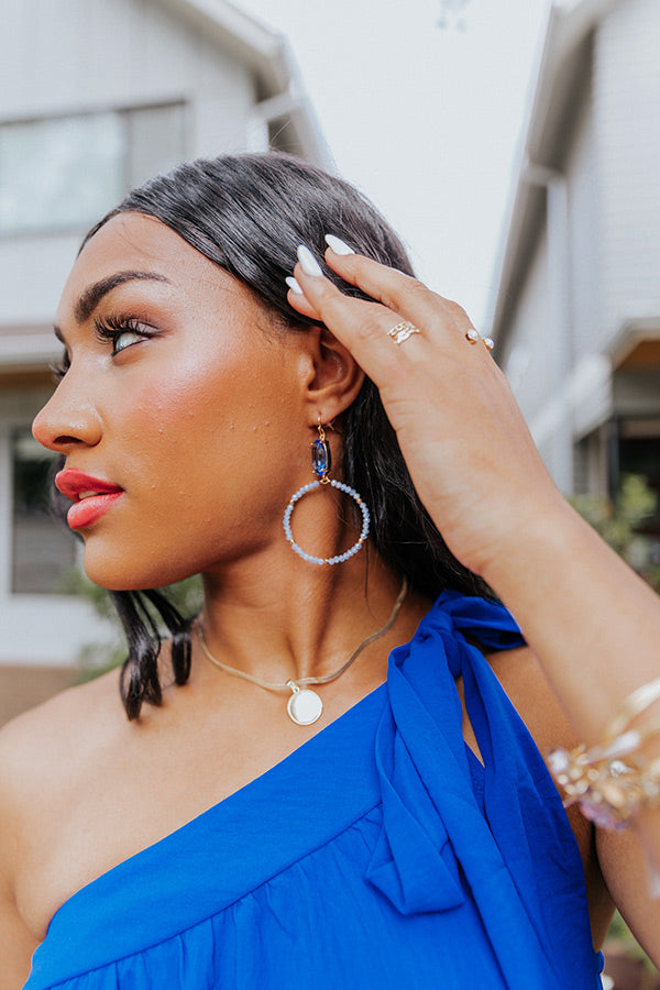 You are guaranteed to be obsessed with our adorable 'Fine Attraction' earrings featuring a dangling blue gemstone with a blue beaded hoop!