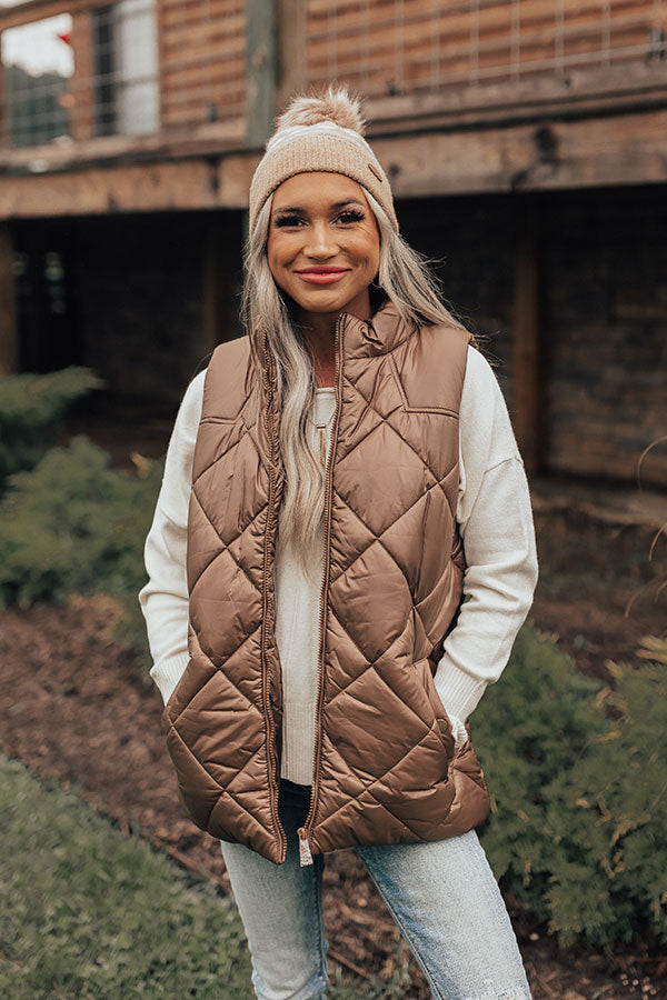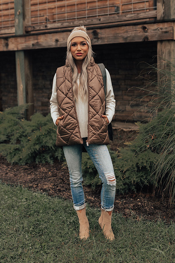 Fireside Divine Quilted Vest In Mocha