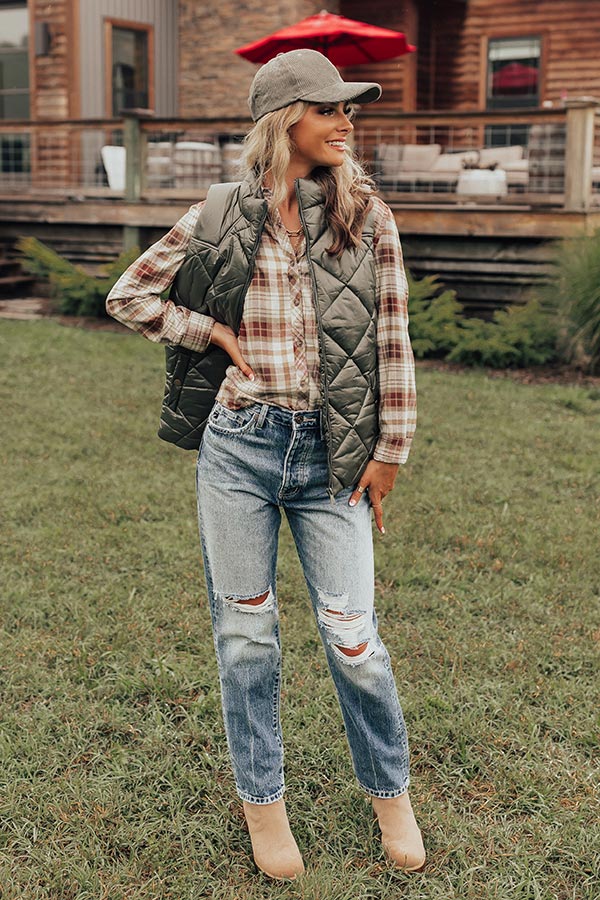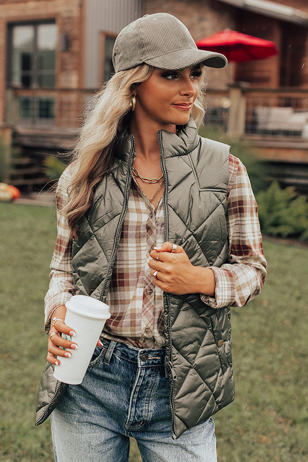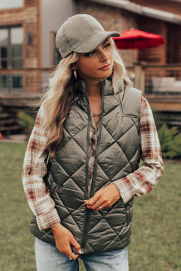 Fireside Divine Quilted Vest In Olive