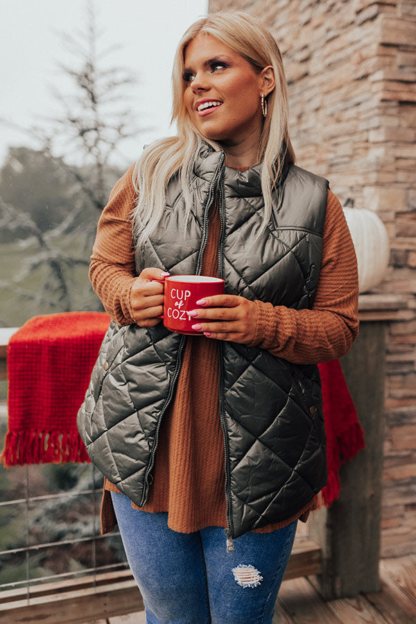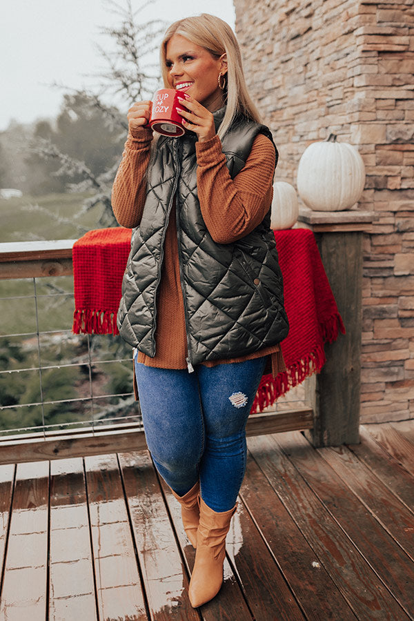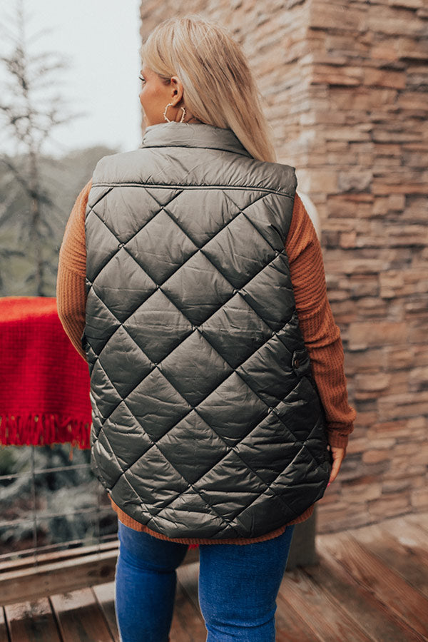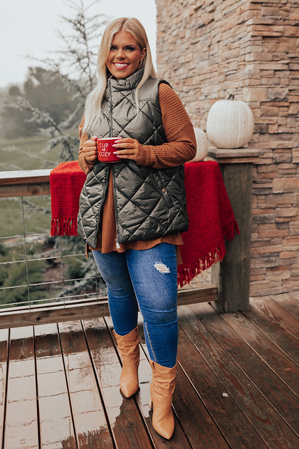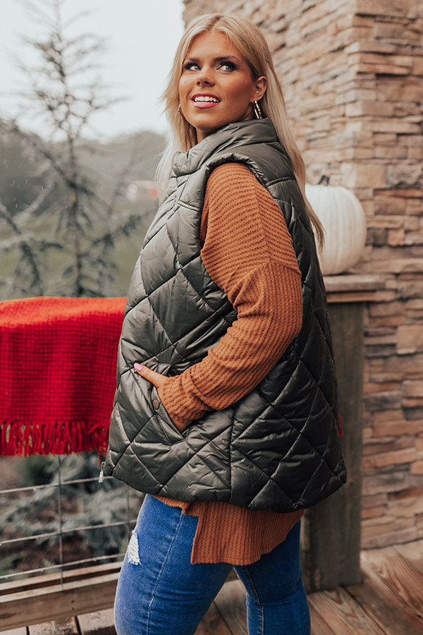 Fireside Divine Quilted Vest In Olive Curves