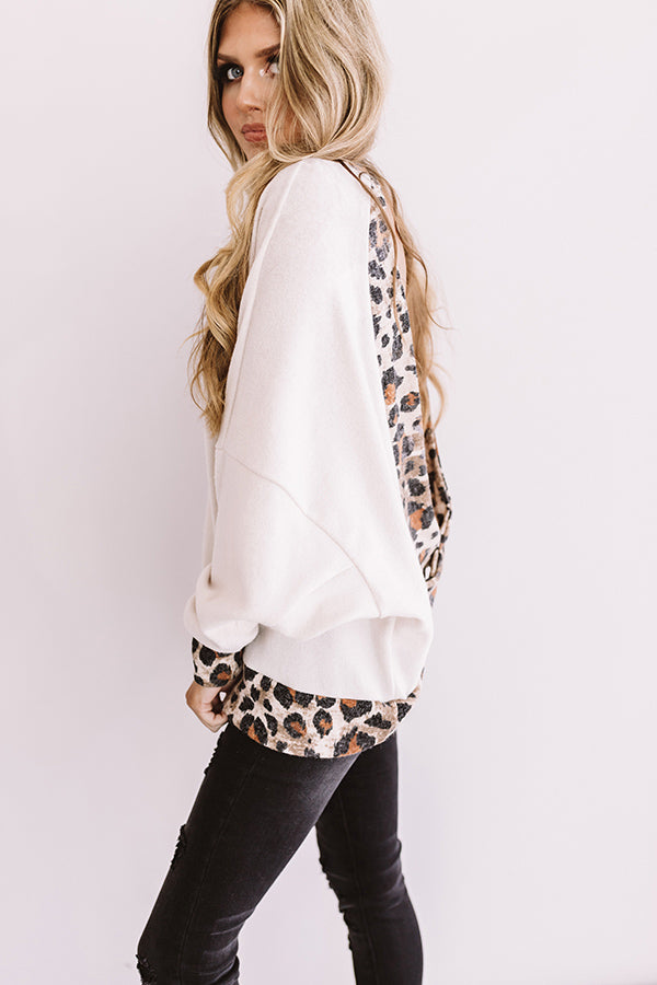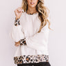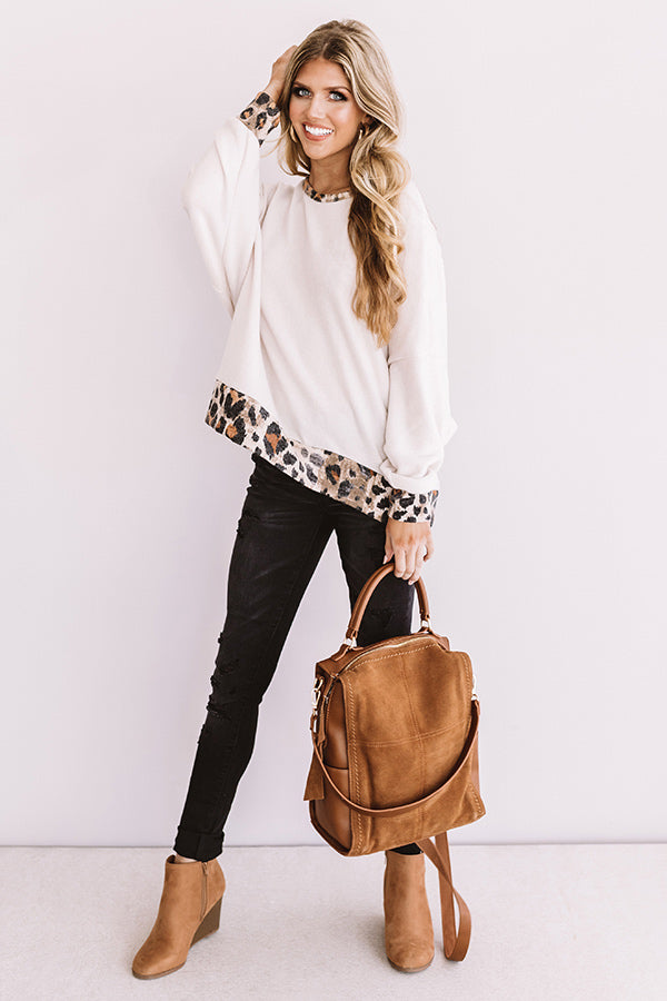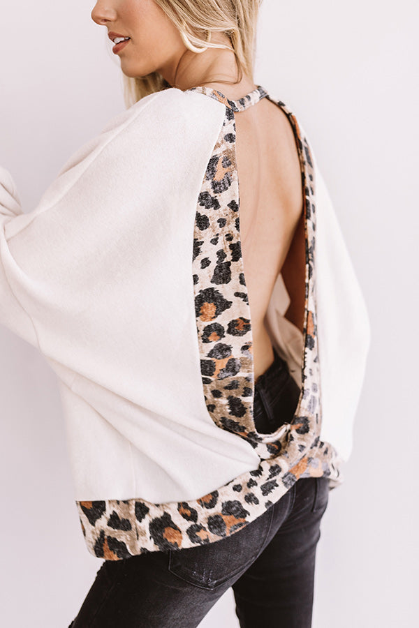 You are sure to be a "fireside flirt" when you wear this unique sweater featuring bold leopard trim detailing, a high rounded neckline, long loose bat wing sleeves with fitted cuffs, an open back, and an ultra relaxed silhouette that falls into a straight hemline! We have styled this striking piece with some black skinnies and a neutral wedged bootie and backpack, but you can also wear it with some denim flares, "The Jonas Hat in Black," and "The Uptown Wedge in Black!" Measurements