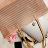 Light tan (iced latte) eyelet tote bag, with removable inner bag with zip closure.