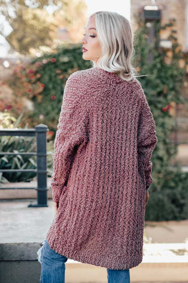Whether you're trying to beat the cold "first frost" or just hanging around the house, you'll want to be wearing this rustic rose colored cardigan featuring a warm loose knit material with ribbed texturing, semi loose long sleeves, accent side pockets, and an open front silhouette that falls into a straight mid-thigh length hemline! You can style this versatile piece with just about anything from a basic tank to a sweater, jeans to skirts or dresses, booties to wedges or sandals, clutches to totes, and hats to earrings!