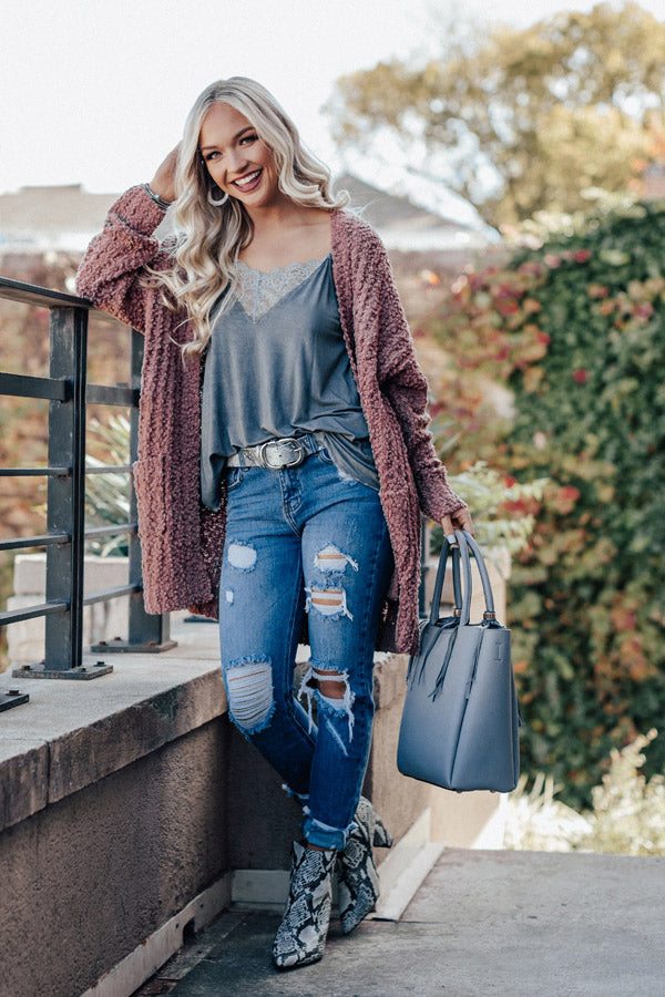 First Frost Cardigan In Rustic Rose