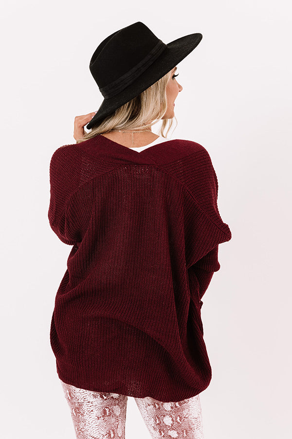 Keep some color in you wardrobe with our luxe merlot hued 'First Kiss At Sunset Cardigan' featuring soft lightweight but warm tight knit material with subtle ribbed texturing, long sleeves, accent side pockets, and a draped open front silhouette that falls into a straight hemline!