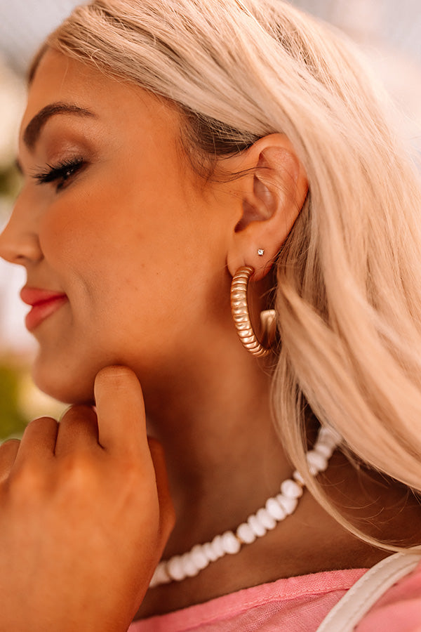 The first stop to fabulous is completing your look with these beautiful earrings featuring gold hoops with shimmering rhinestone detailing!