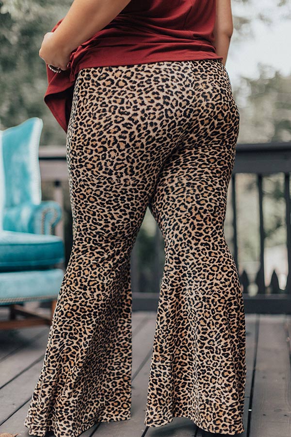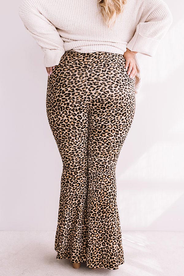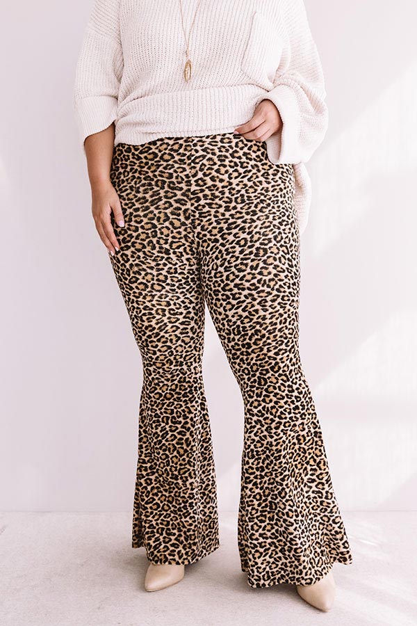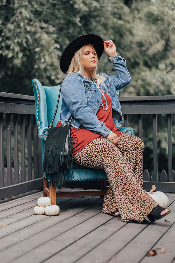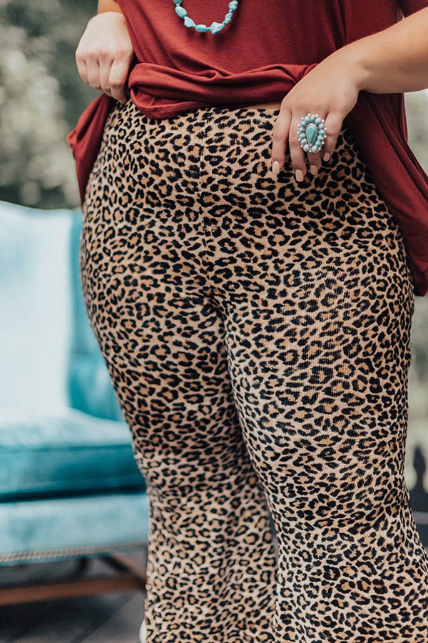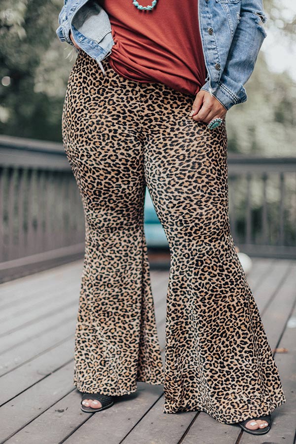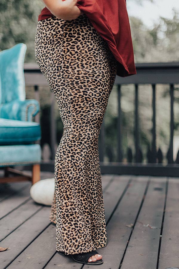 Plus Size - If you have a "flair for fashion" then these pants are PERFECT for you with their lightweight stretchy and soft material, subtle ribbed texturing, bold leopard print, wide elastic waistband, and fitted silhouette that falls into straight floor length flared hems! We have styled these eye catching bottoms with a fall colored tee under a denim jacket, a turquoise statement necklace, a fringe crossbody, and a black peep toe heel and faux suede hat, but you can also wear it with our "Fall Friendly Chenille Shift Sweater in Ivory," our "Jetset To Italy Tote in Black," and "The Jess Faux Suede Heel in Natural!"