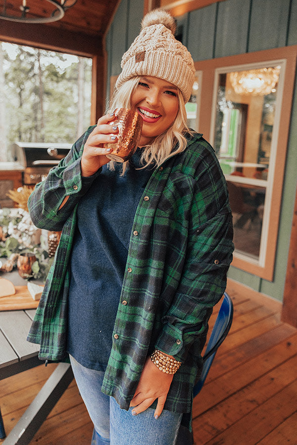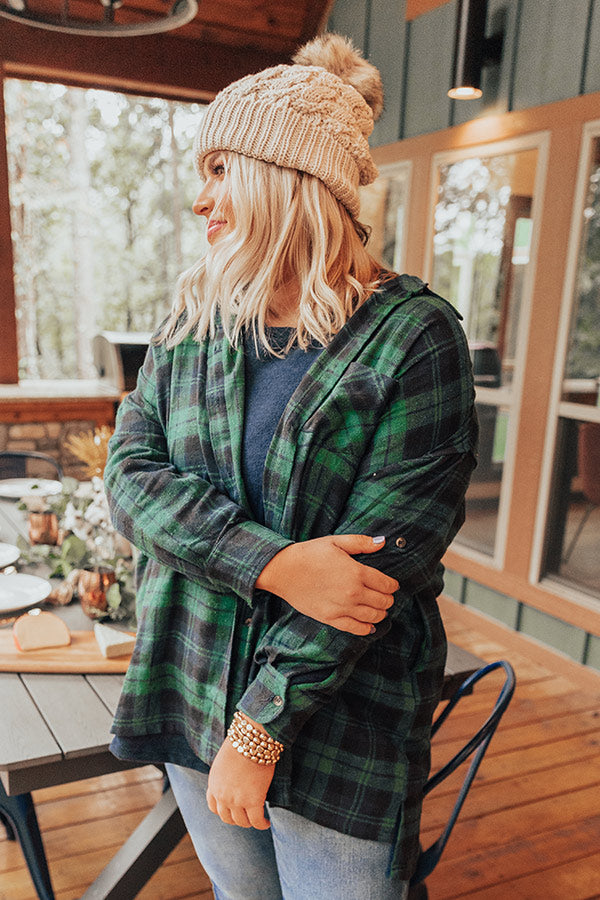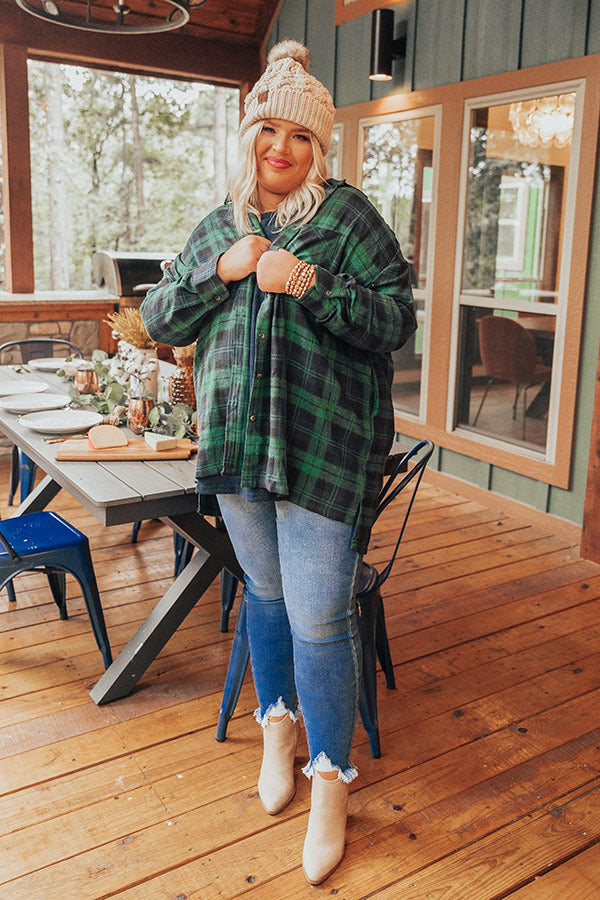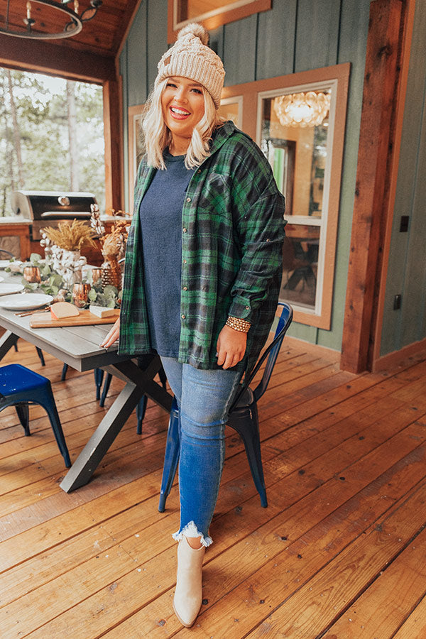 Flannel Pick Me Up Tunic In Hunter Green Curves