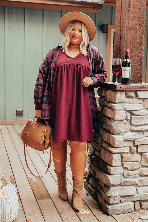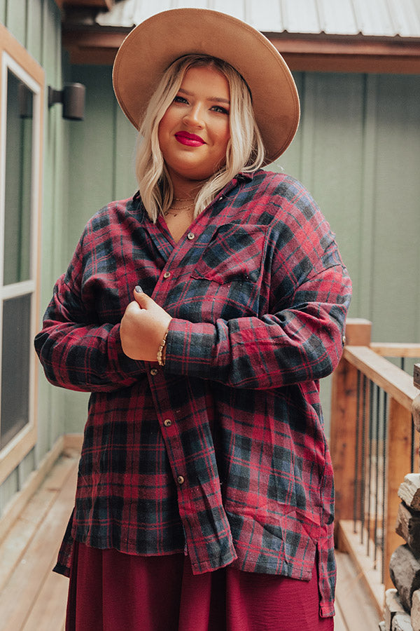 Plus Size - It's not fall without a "flannel pick me up!" That being said, you're sure to be head over heels for this adorable top featuring a blue and wine colored checkered color combination, super soft lightweight material, long roll-tab sleeves that can also be worn down, hidden side pockets, a button up bodice with a collared neckline, a straight tunic length hemline with side slits, and an oversized fit! Measurements