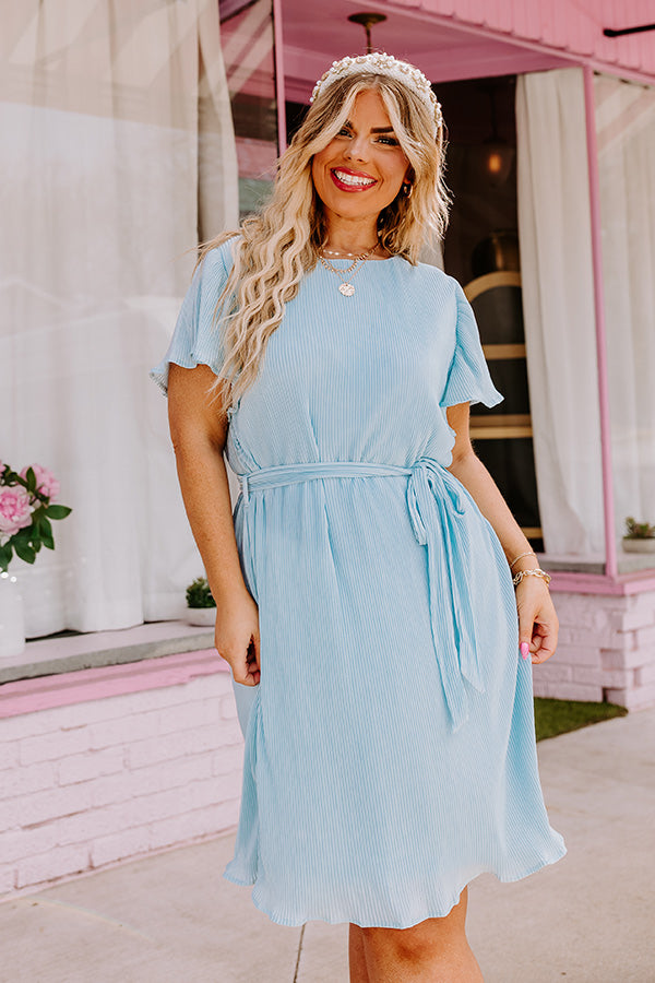 Flight Miles Pleated Dress In Sky Blue Curves