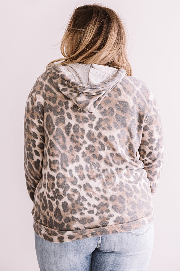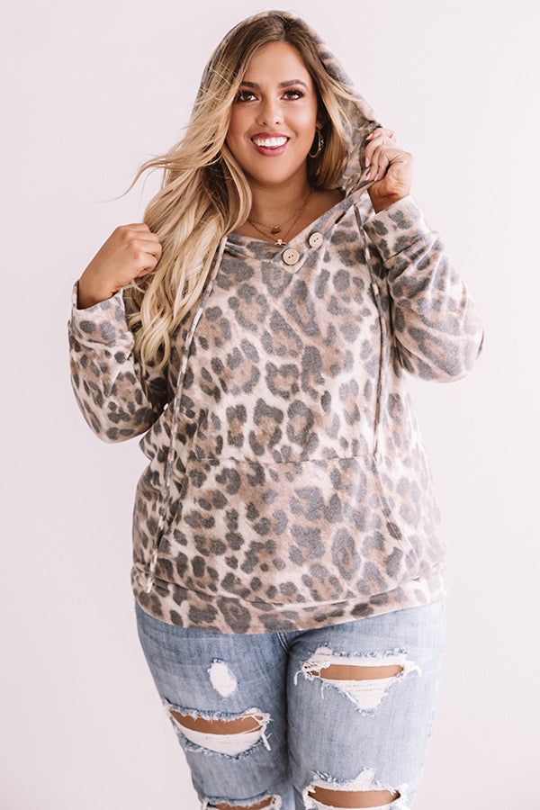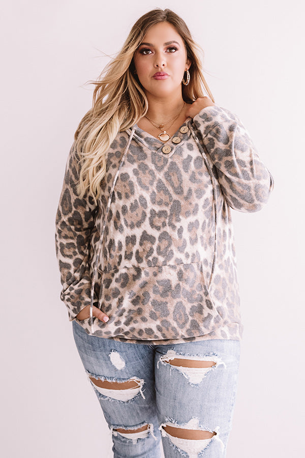 Plus Size - You won't find a more comfortable piece to wear for your "flight to Frisco" than this hoodie featuring soft lightweight material patterned with a bold black and neutral leopard print, a v-cut neckline with accents buttons, a drawstring hooded back, long loose sleeves, a large kangaroo pocket, and a relaxed silhouette that falls into a straight hemline! You can dress this piece up with some distressed ankle skinnies, neutral booties, and a colored backpack, or you can dress it down with our black "Happy Hour Hustle Midrise Moto Legging," a beanie, and "The Delaney Sneaker in Leopard!" Measurements