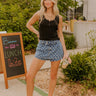 - This adorable denim skort is the sweetest finishing touch for your trendy OOTD! The playful bow print adds just the right amount of charm to your look. - Unlined denim material with a lattice bow print - Belt loops - A hidden zip fly and button closure - A design featuring shorts with a mini skirt overlay - A flattering skort silhouette that ends in upper-thigh length hemlines