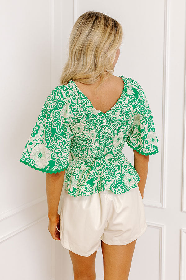 Flirty Forecast Smocked Top In Kelly Green