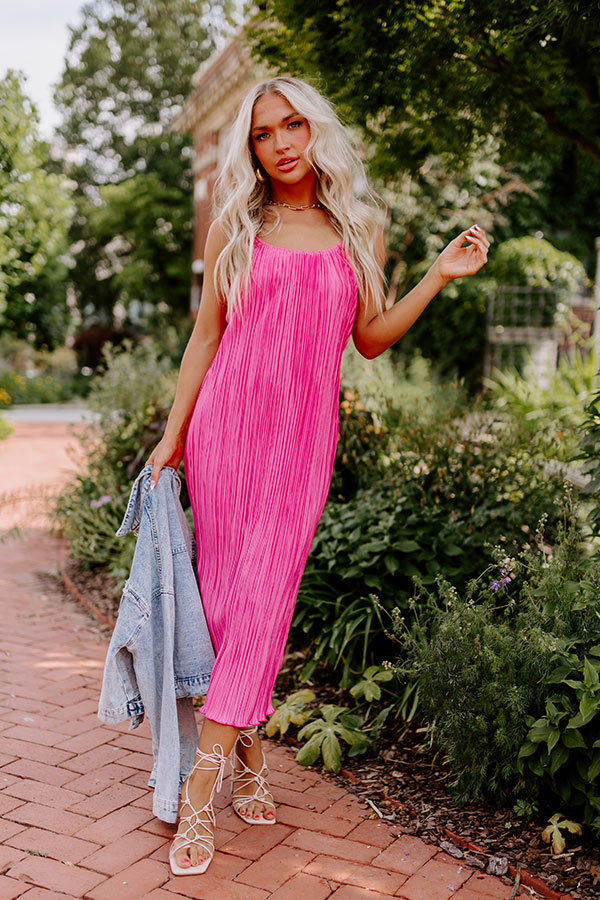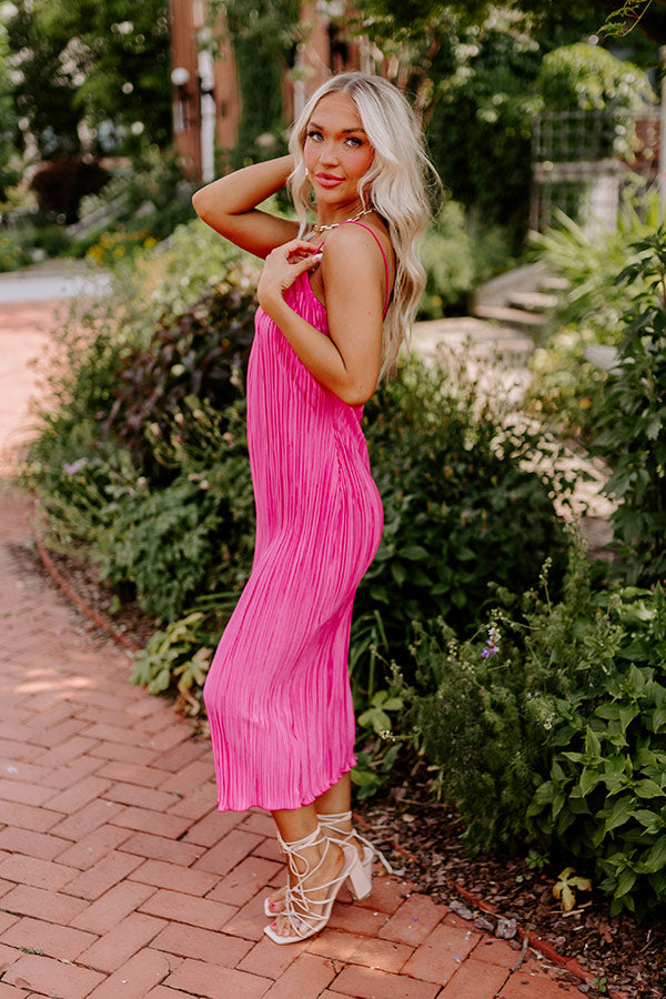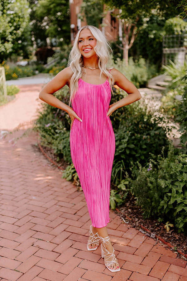 Flirty Frills Pleated Midi In Pink