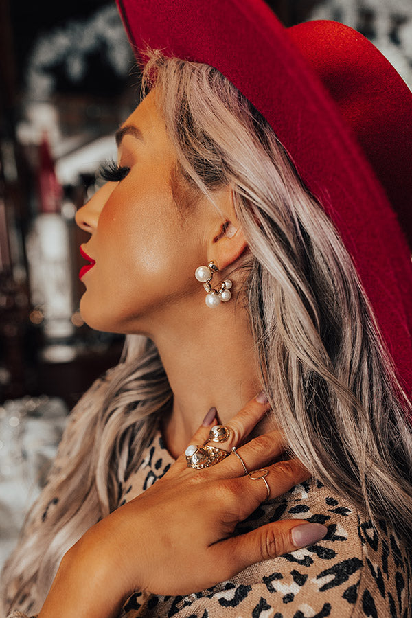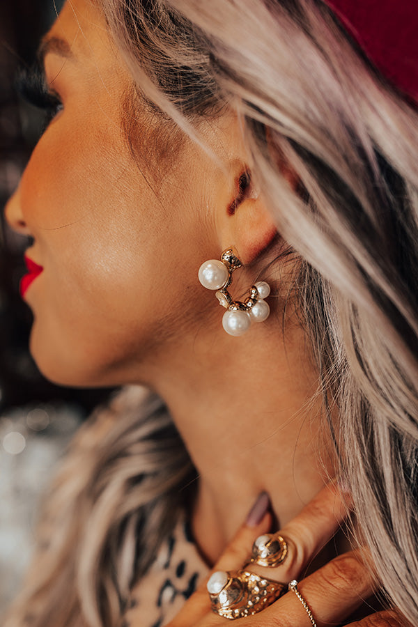 Add a flirty touch to any look with these elegant earrings featuring small pearl encrusted gold hoops!