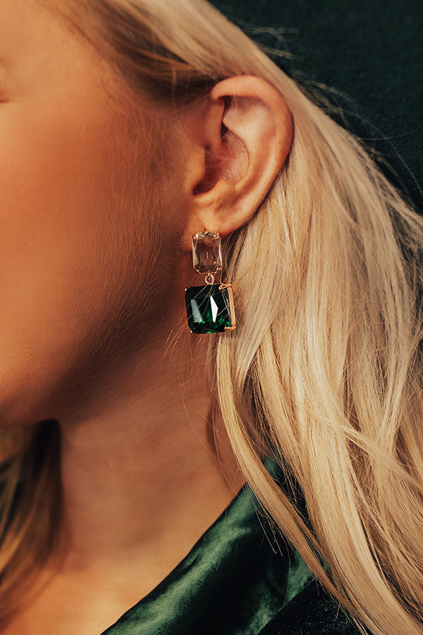 Elevate your already beautiful look with our stunning 'Floating On Air Earrings' featuring a rectangular clear rhinestone stud with a dangling square emerald gemstone!